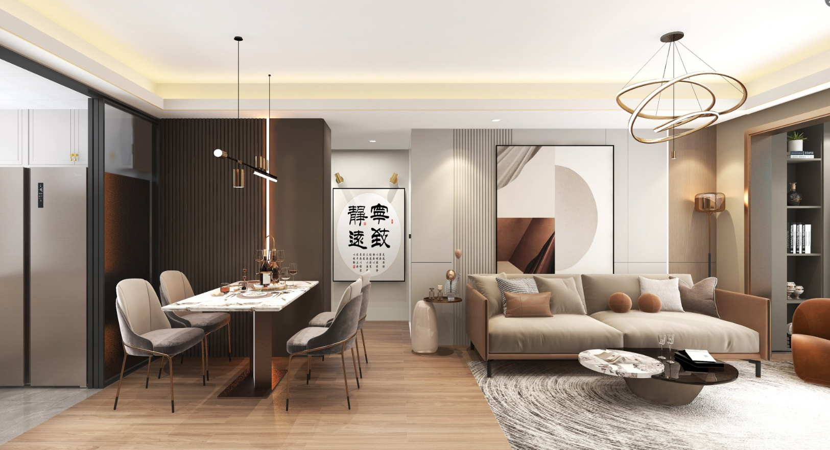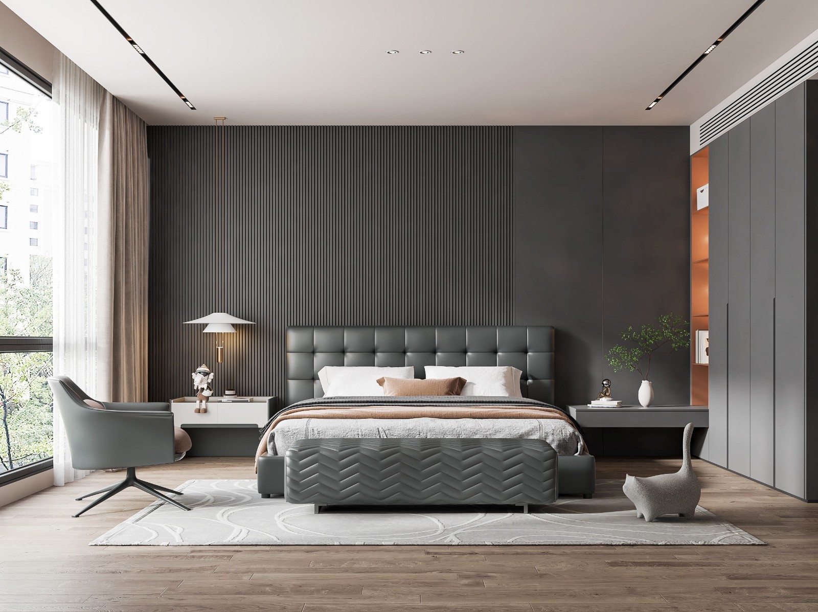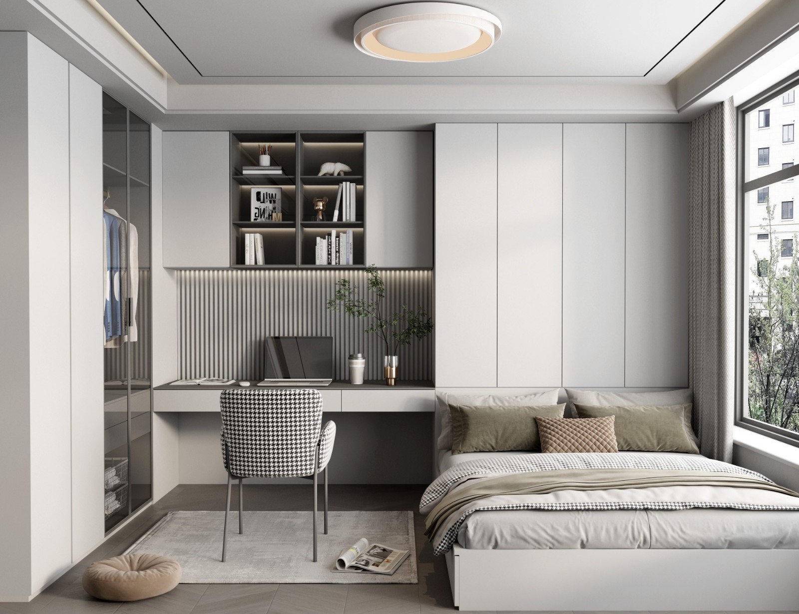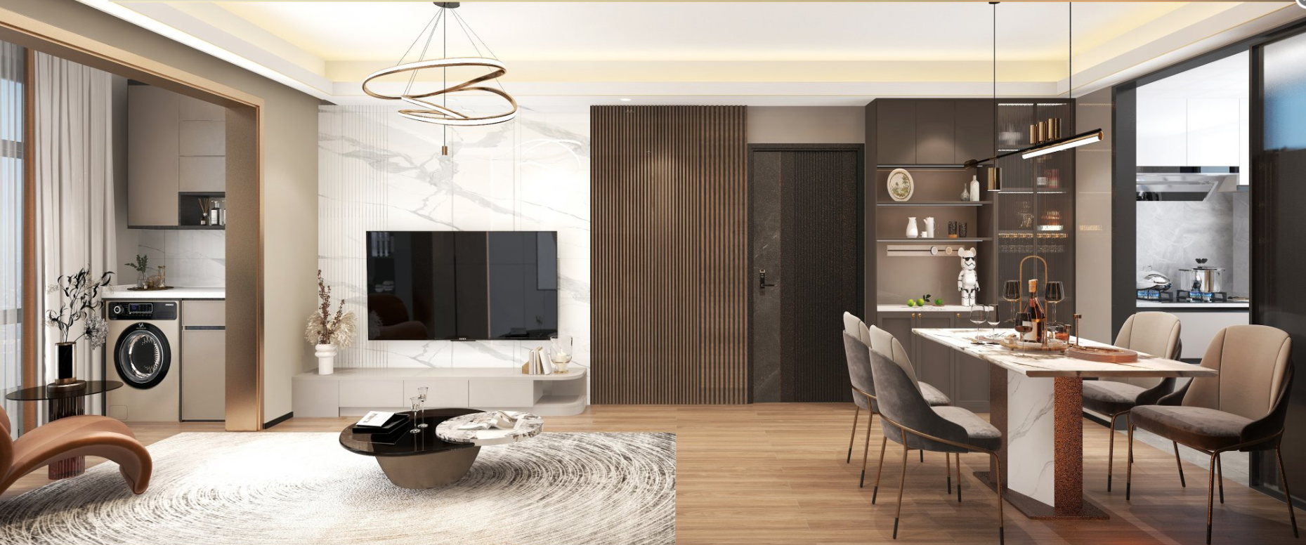充分的收纳和干净的块面来处理空间