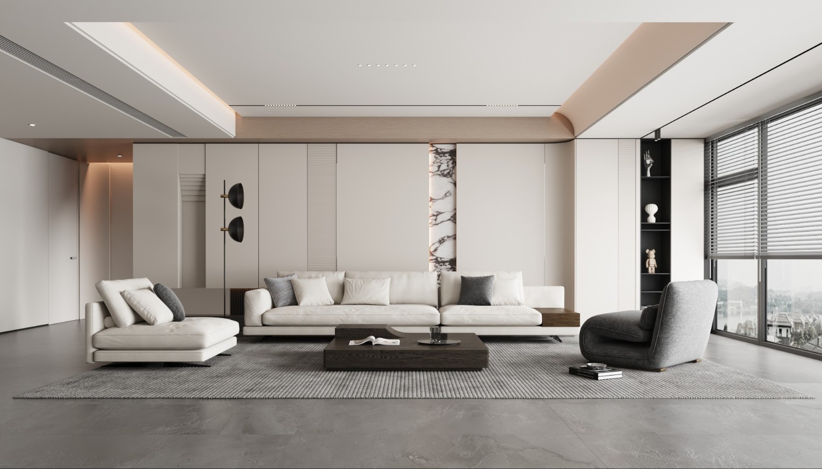在未大幅度改动硬装的基础上,主要运用协调的软装和色彩搭配来改造这套住宅。首先我们封闭了阳台,将阳台与客厅联通,跳出风格限制,尝试将现代极简的空间氛围与传统雅致的生活方式融合,让这个家成为他们表达自我的出口,时刻享受被喜欢的一切包围的感觉,在榨干每一平米的同时张弛有度。