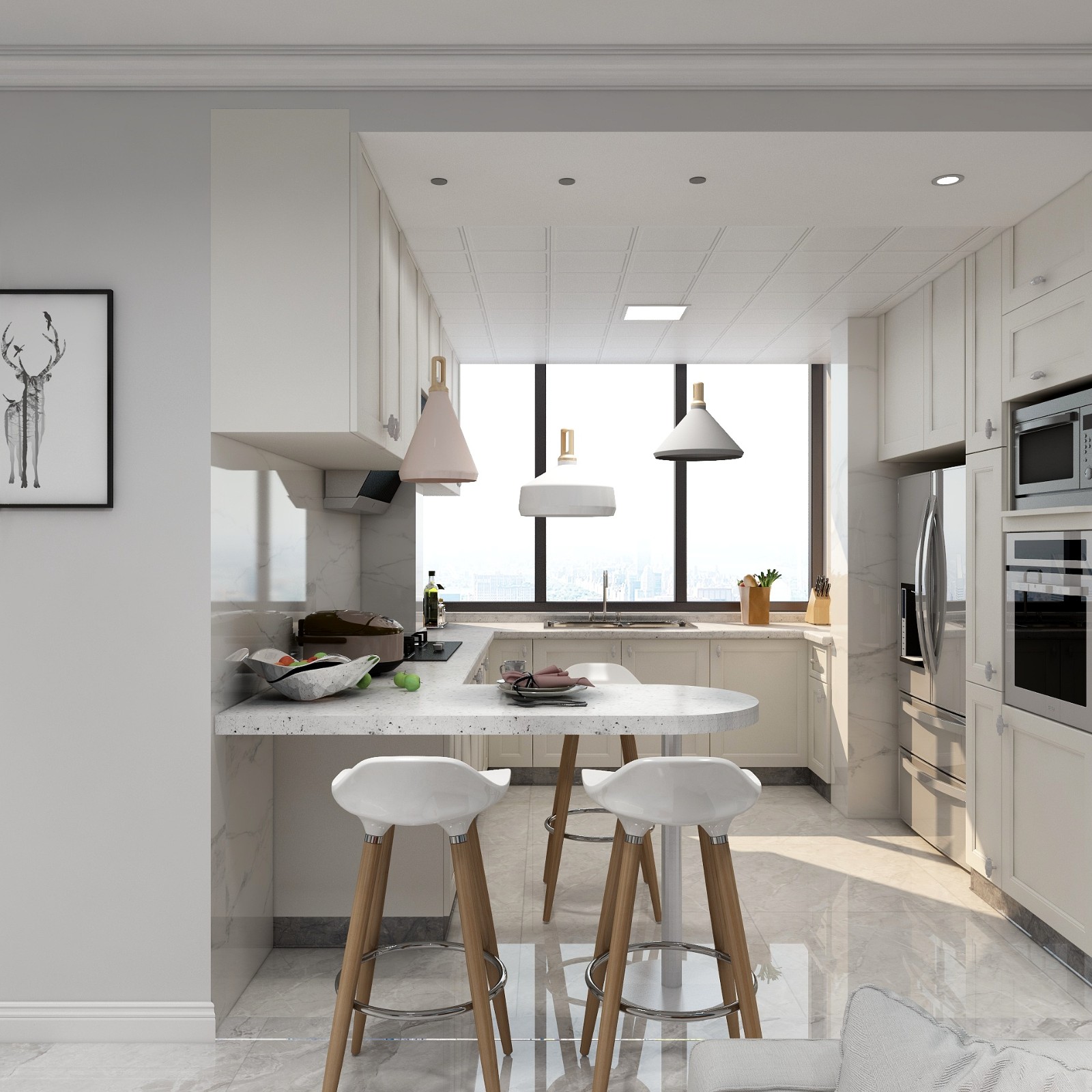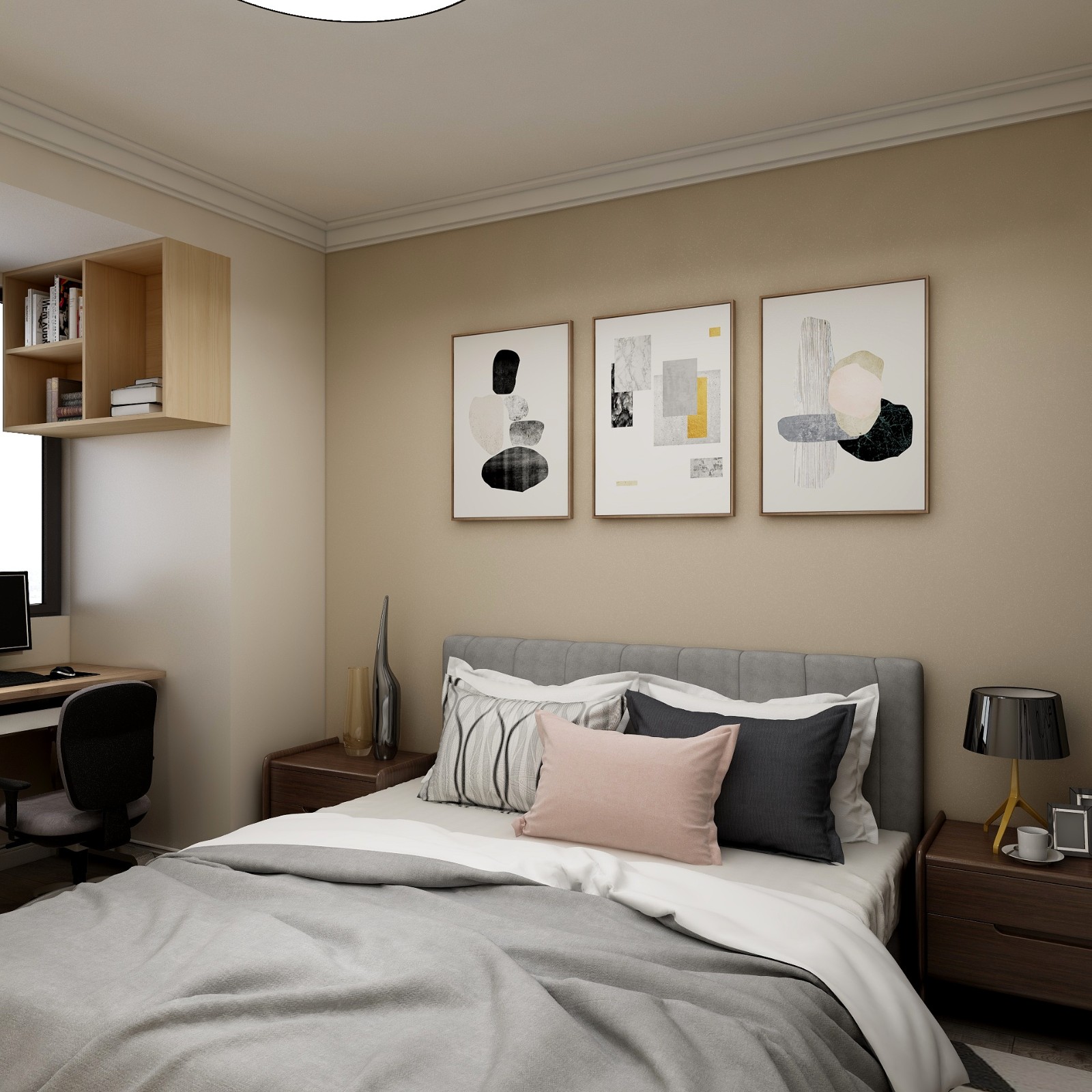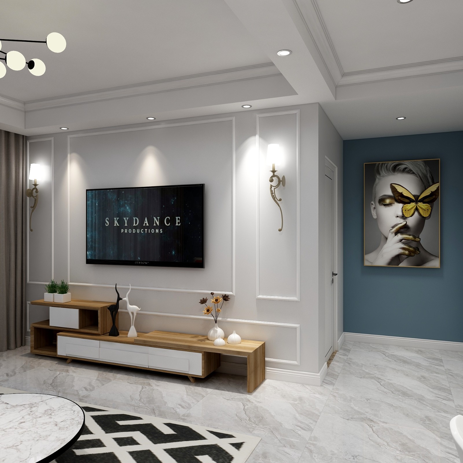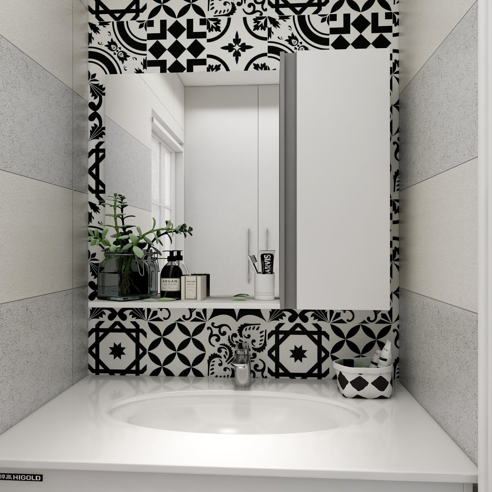 现代风格,业主喜欢白色,整洁明亮,又喜欢暖黄色,温馨,又想要有点不一样的跳色,还想要点黑白对碰的颜色,业主问设计师是不是很难实现在一个房子里面,又协调,然后设计师就给了这个方案,卫生间台盆镜柜,局部黑白色对碰,整体开放式厨房,跟客厅白色明亮,干净大气,在玄关的尽头用一块灰蓝做跳色,然后主卧室,就是我们说的我们自己独立的小窝,做了一个单独的暖黄色,整体效果出来业主非常喜欢,所以有时候设计是针对每一个业主去做的,并不是要千篇一律的所谓的风格。