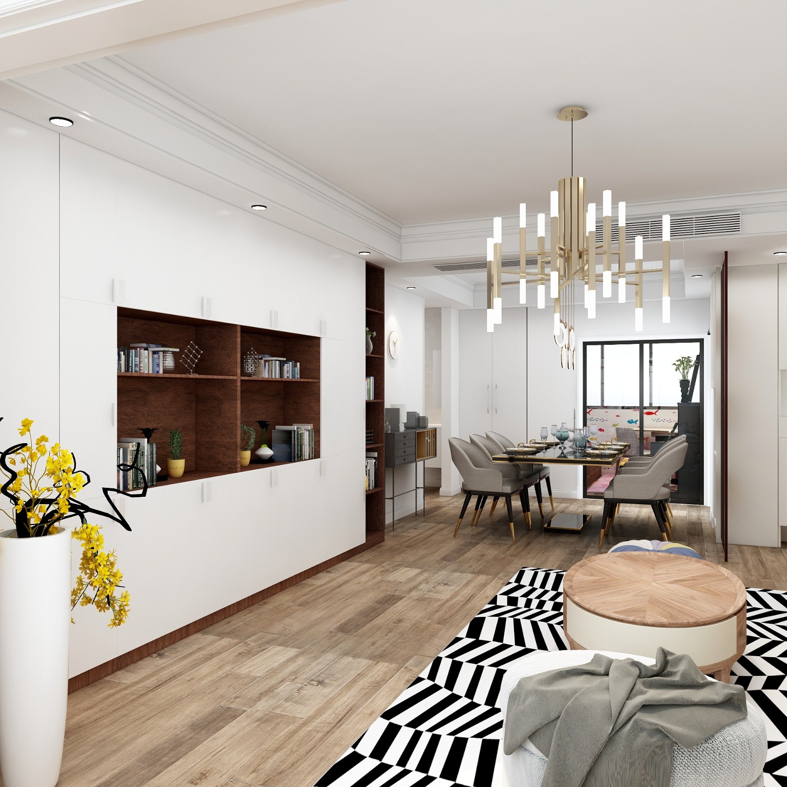 业主刚开始对于风格很纠结,完全不知道自己想要什么,又什么都想要,颜色要求灭用很明确的路线,但是功能非常明确,要走到哪里都有书,每一个区域都能成为孩子学习的地方,电视背景墙,整个一大块,全部做成书柜保留中间一小节,放电视,还是预留空间,然后孩子的房间,儿童房,对于儿童房的理念真的是很到位的,睡觉的时间,所需要空间,玩耍的时间,所需要的空间,学习的时间,所需要的空间,整个比重,清晰的告诉设计师她想要孩子怎么成长,需要怎么样的环境,然后再就是空间的关系,客厅的所有空间都留白,给孩子自由。唯一把自己主卧室的背景做了一个自己很喜欢心心念念的蓝色。感受到一位母亲未来孩子对家里的牺牲,有点孟母三迁的意思。