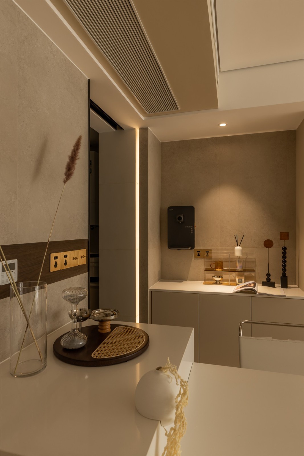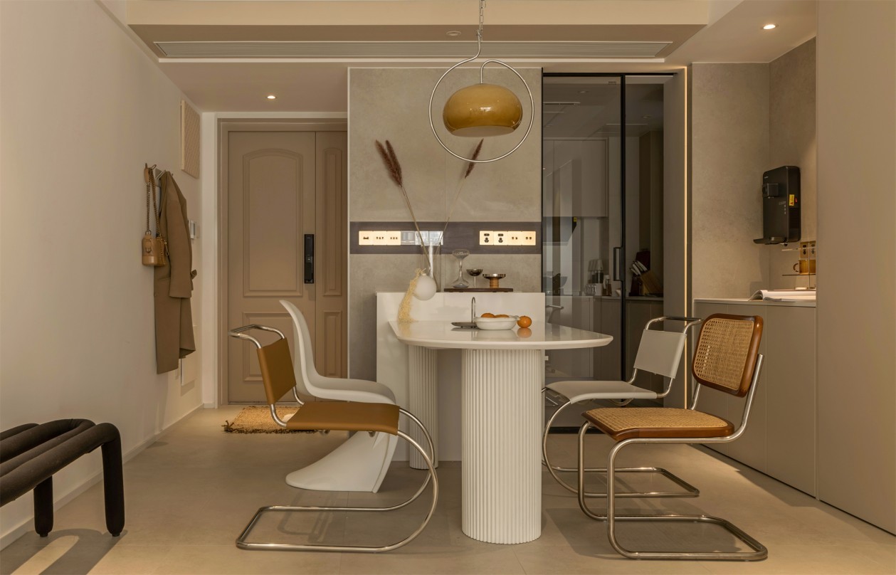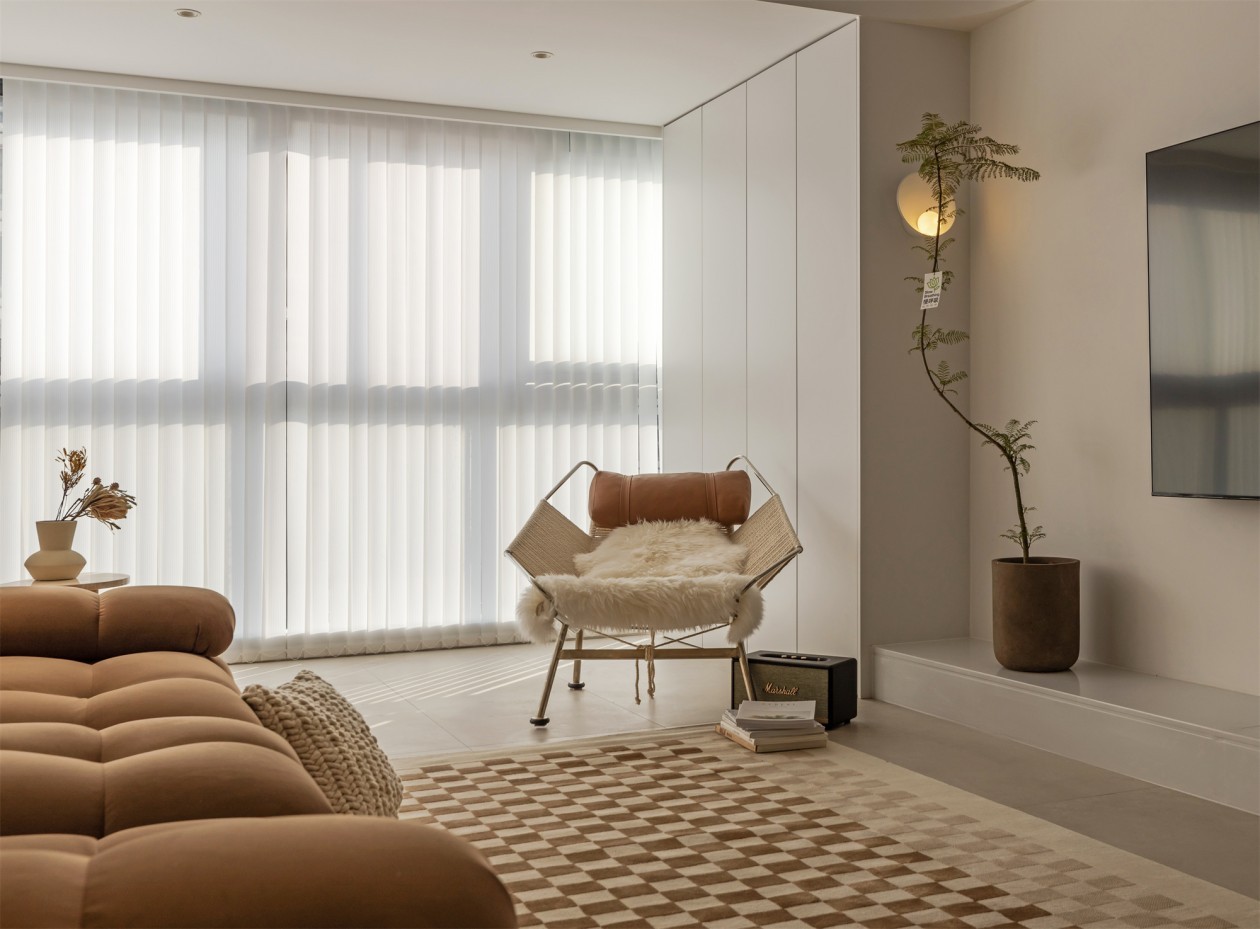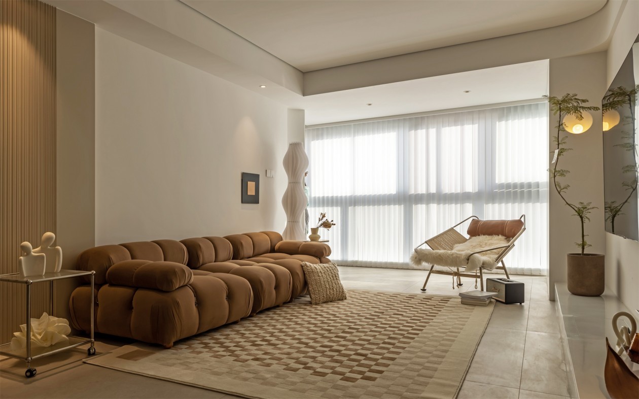 本案为现代简约风格设计,设计师以咖色系为基底,淡淡的咖啡色贯穿整个生活空间。原来浅咖色打造的极简空间,高级的这么美好,整个空间温润又有力量。