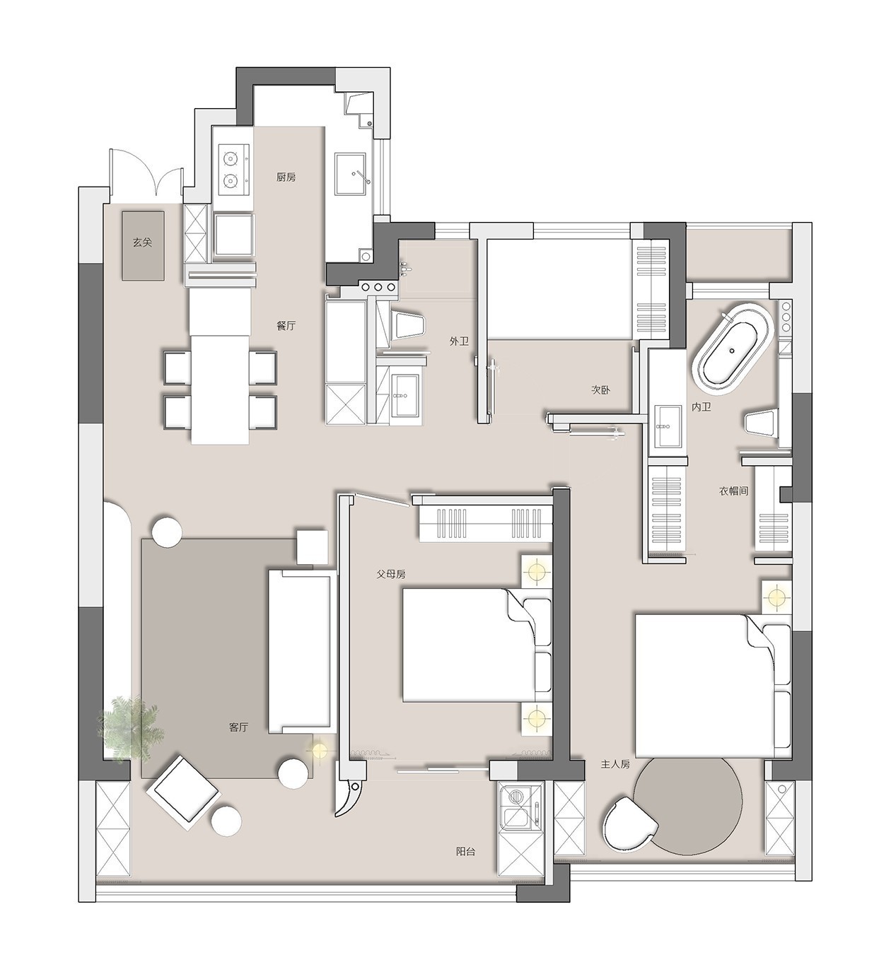 布局:三房