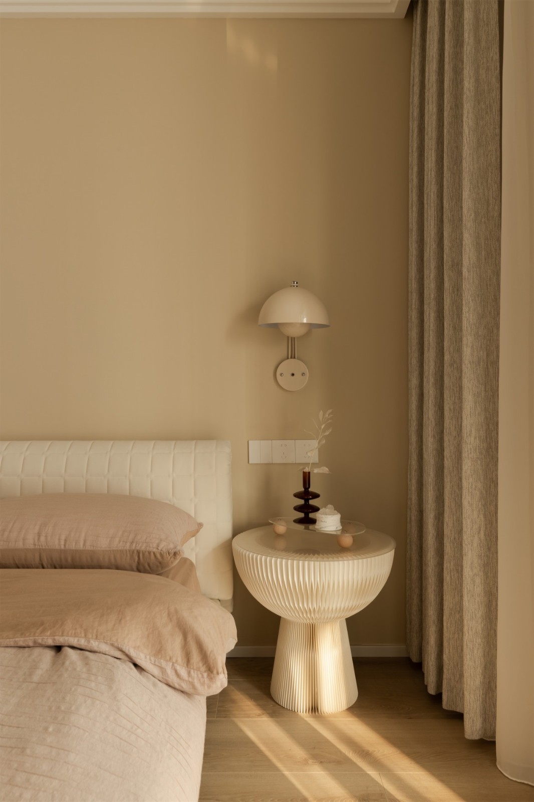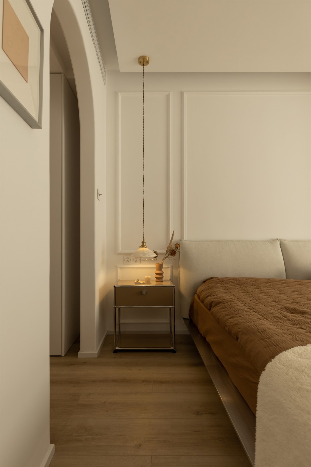 沉稳咖色的融入为卧室镀上一道高贵的光晕,散发非凡绅士格调,刻画优雅君子气质,带着浓稠质感,却又有道不尽的华贵气息围绕。