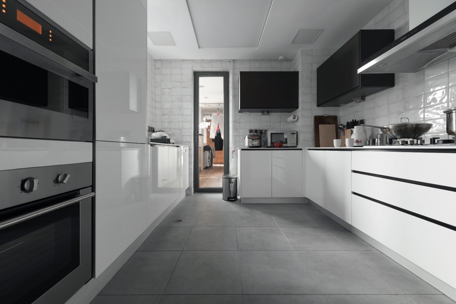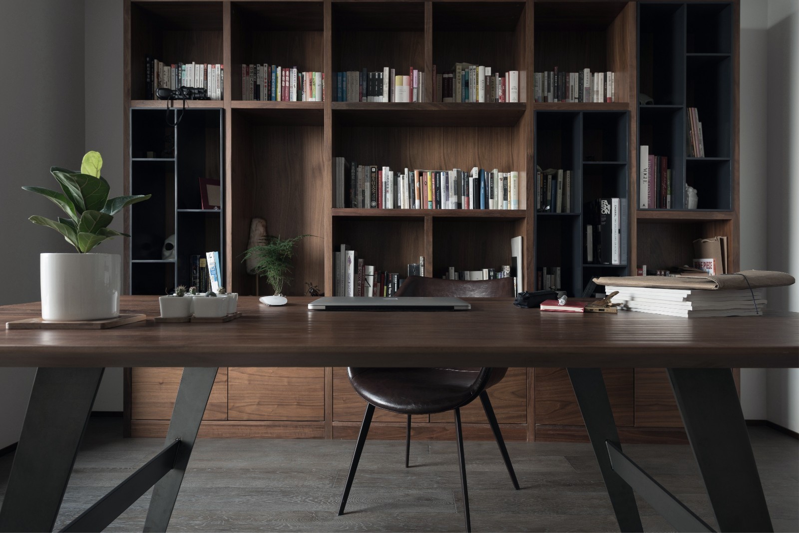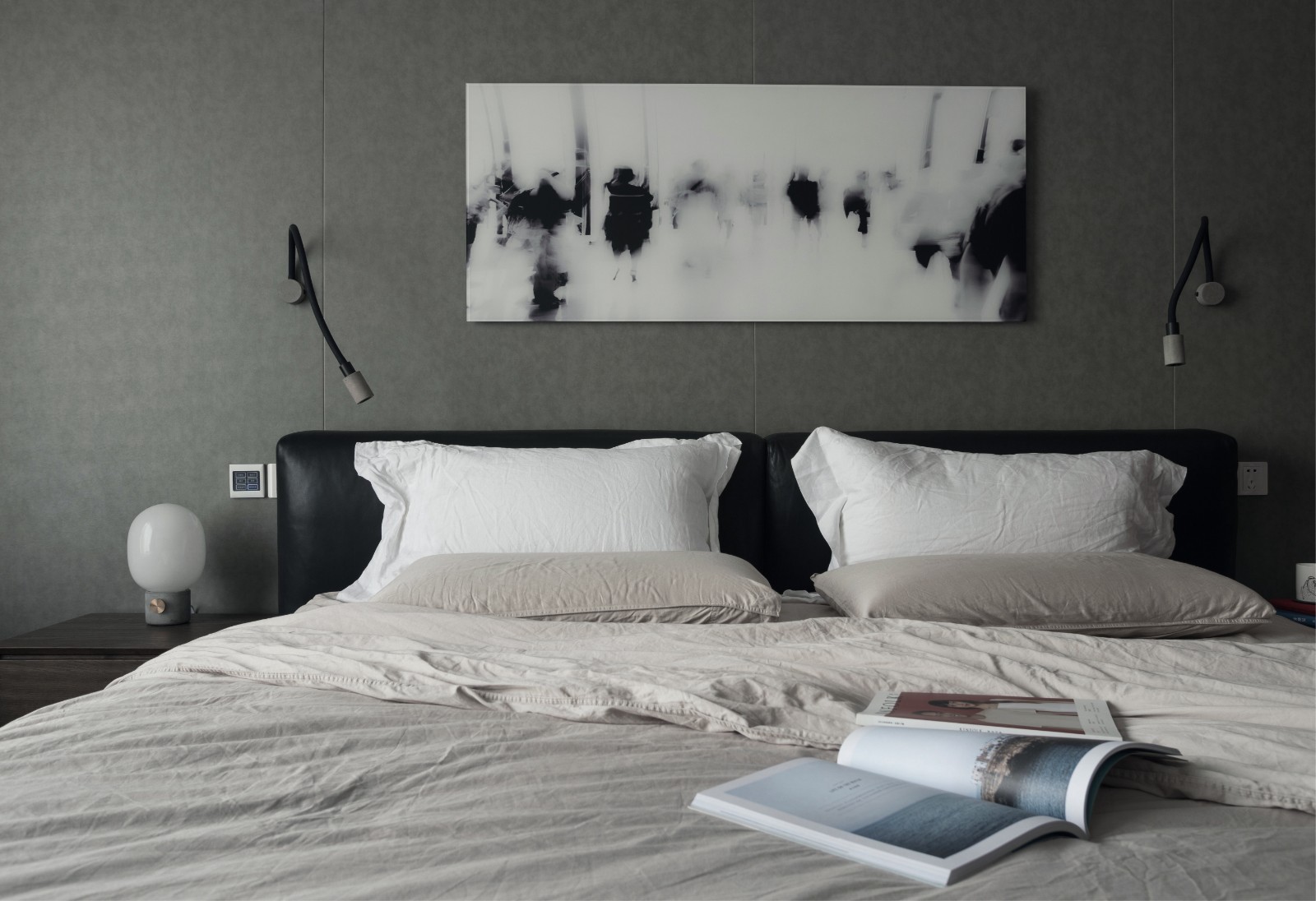 时尚的餐桌在墙饰的陪衬下,高雅,别致.