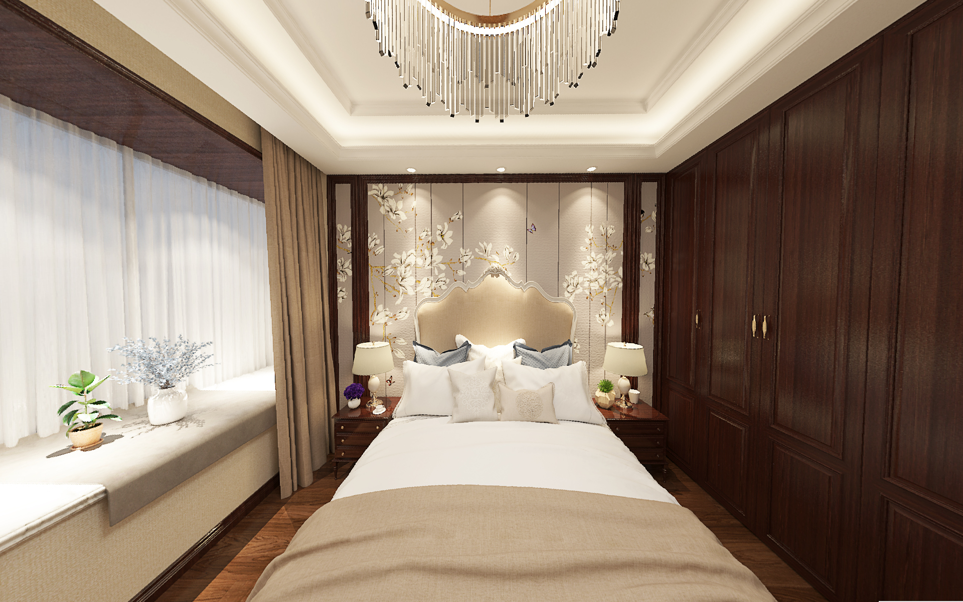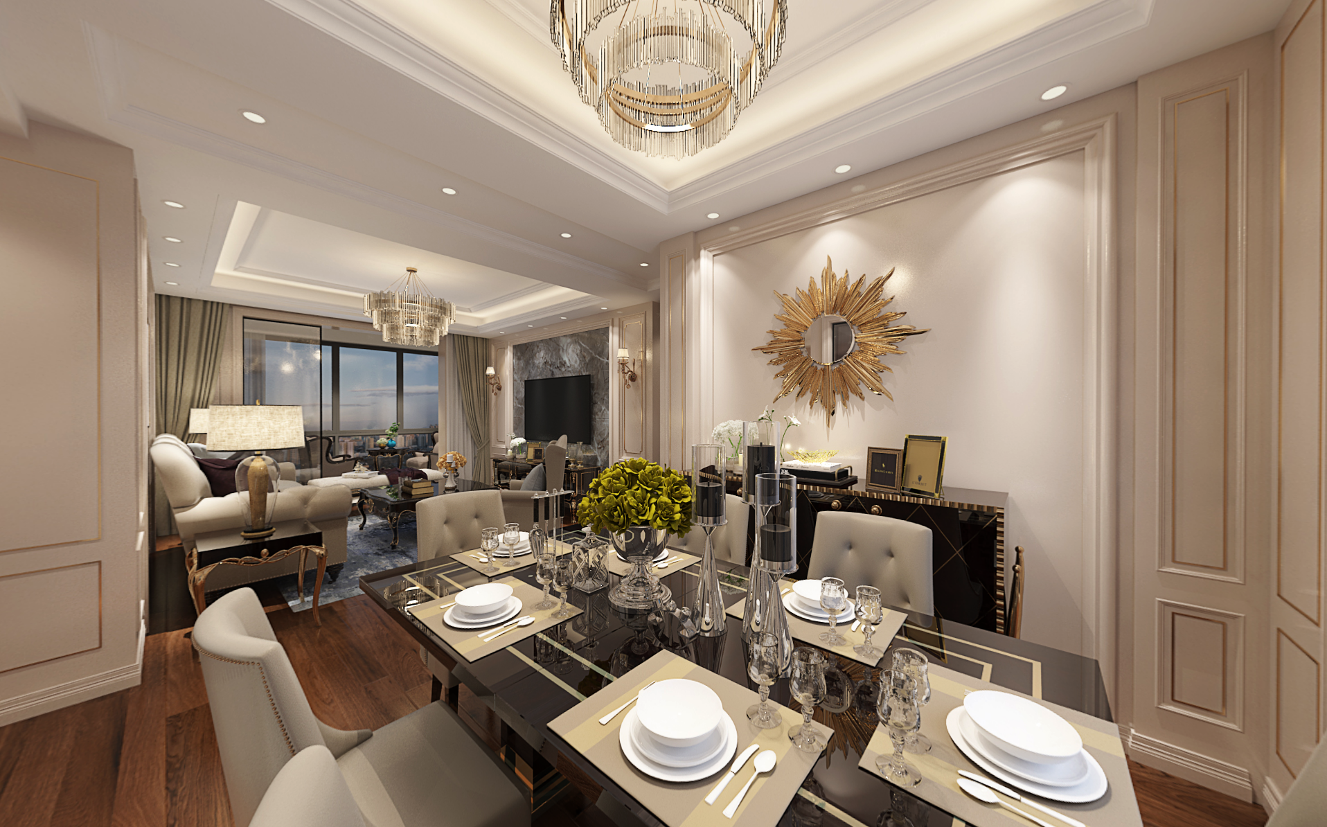 本案业主为夫妻俩,生活品质要求较高。设计师选用欧式风格,采用实木家具与金属线条,让整个空间显得典雅和精致,局部采用的深色大理石背景也为其增添古朴气息。 客厅主要以会客为主,储物功能则单独放在每个房间,根据客户的需求选择完美的空间利用方案且容入整个风格的布局。 卧室则也是为了展现主人的品质,选择以艺术墙布为主的背景方式,让整个空间拥有笔墨香气。