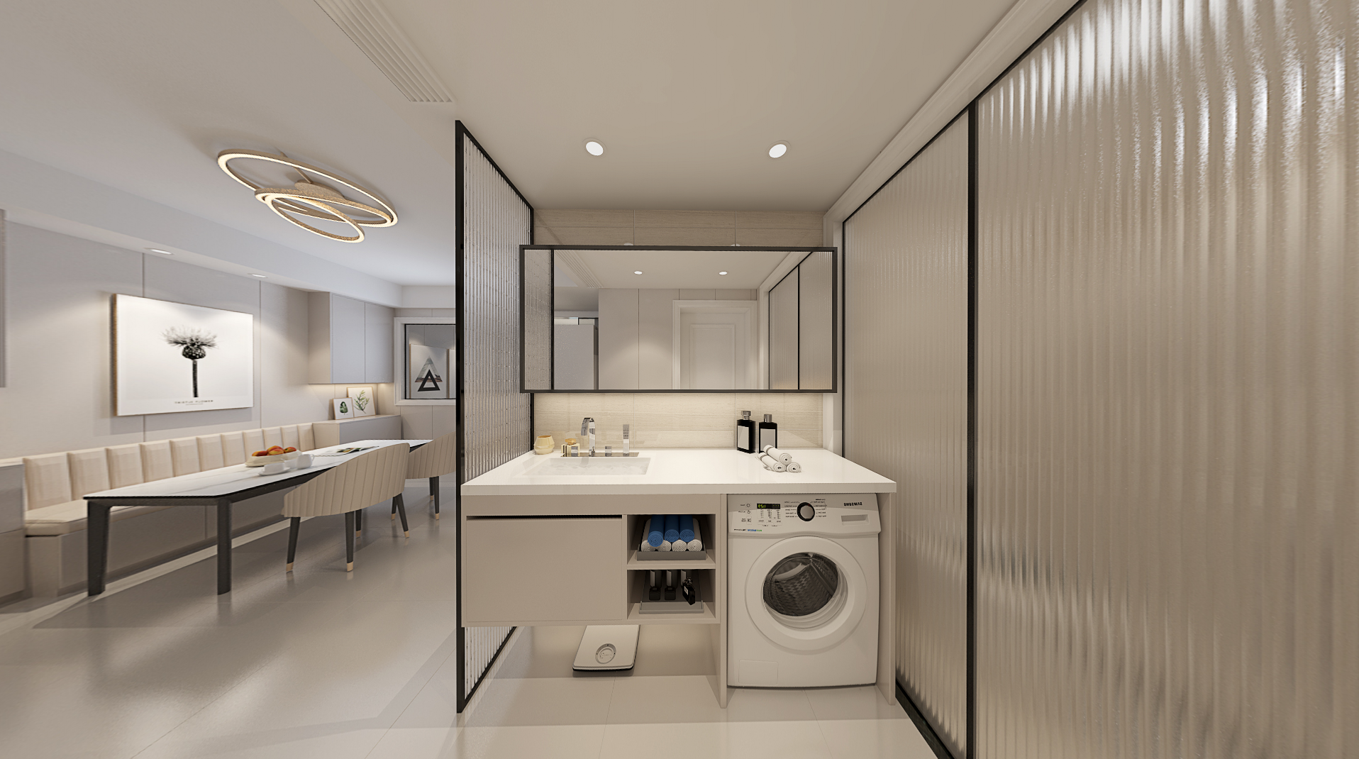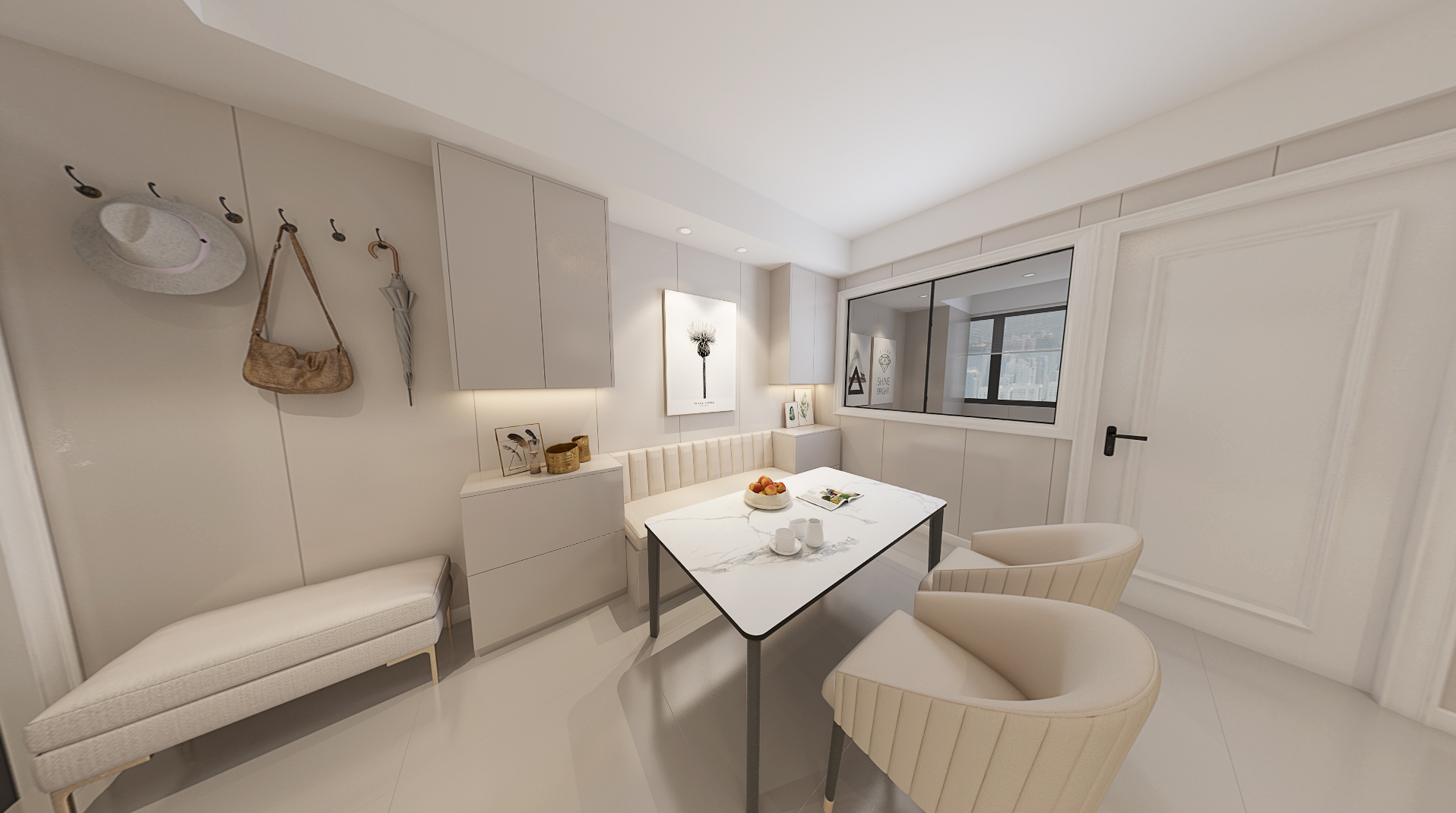 本案原是两卧,五口之家,为了满足孩子的独立空间,需要改为三卧,要满足基本的储物功能。在原有户型的基础上,设计师利用较大的客厅空间进行分隔出一间儿童房,且在做了采光,通风的基础上,满足了儿童房的睡眠、储物与作业区。满足了客户的要求的同时,也不忘餐厅空间的储物功能,极大的利用空间同时,生活上也做到方便、舒适。