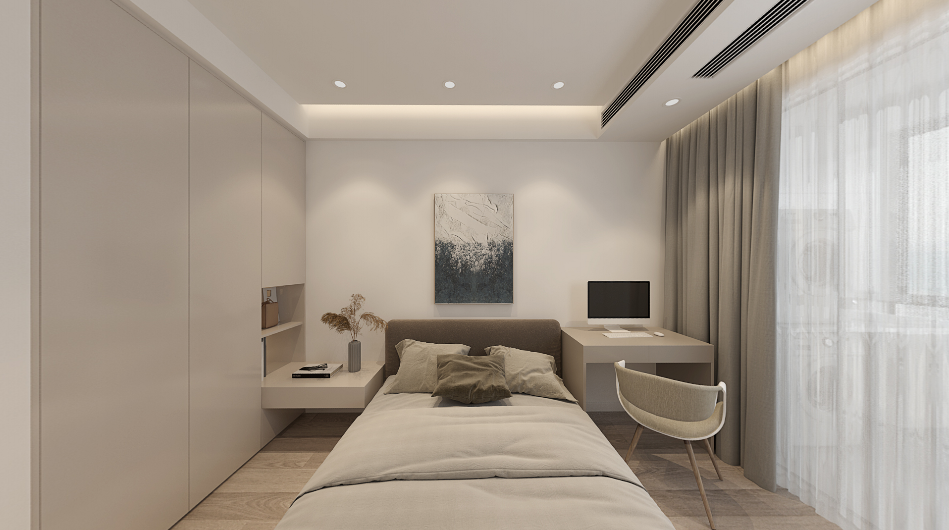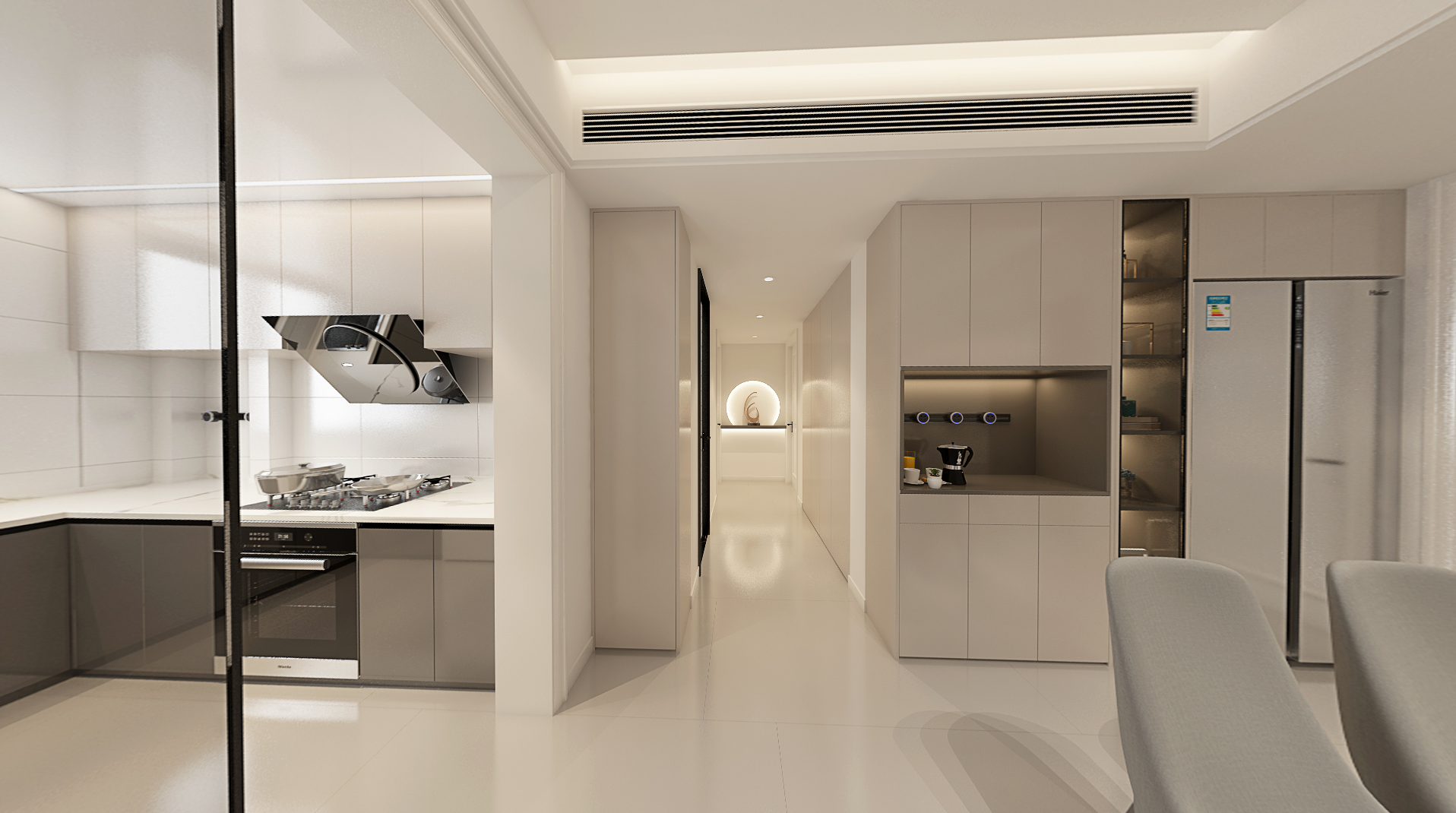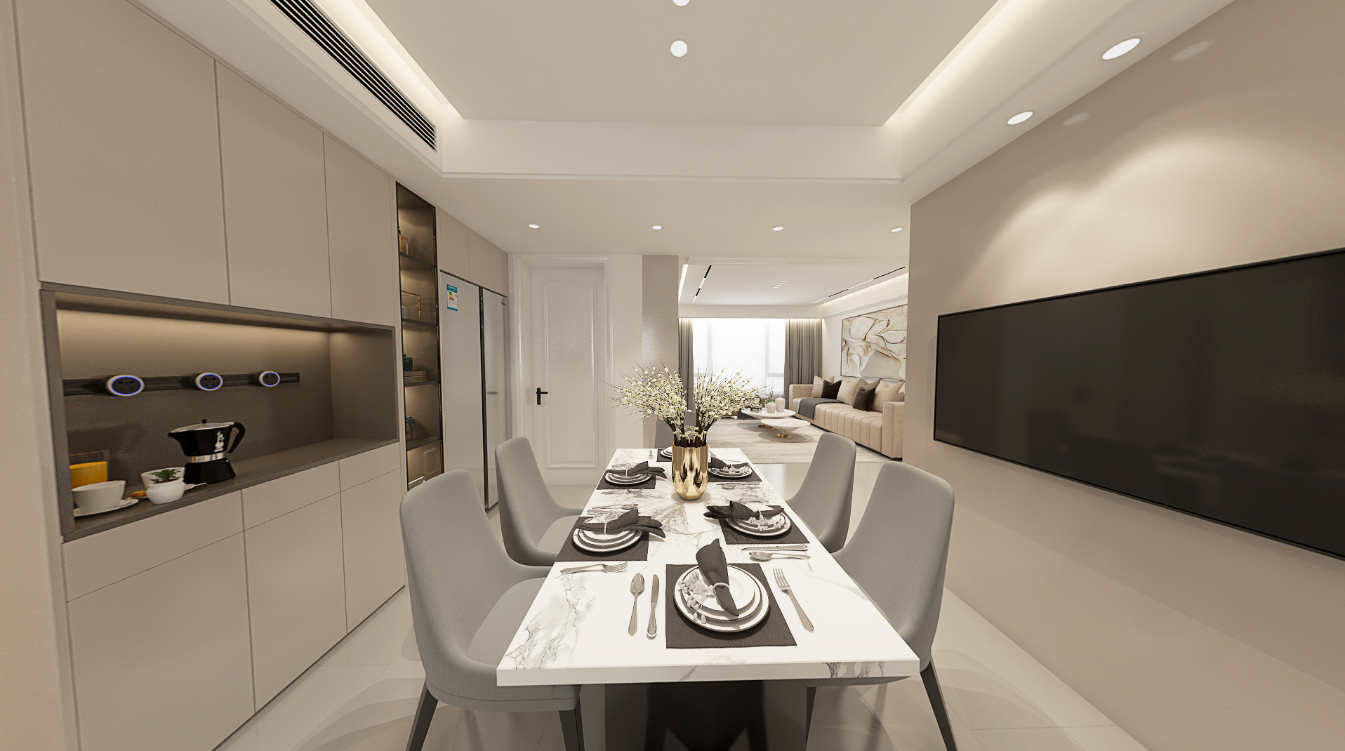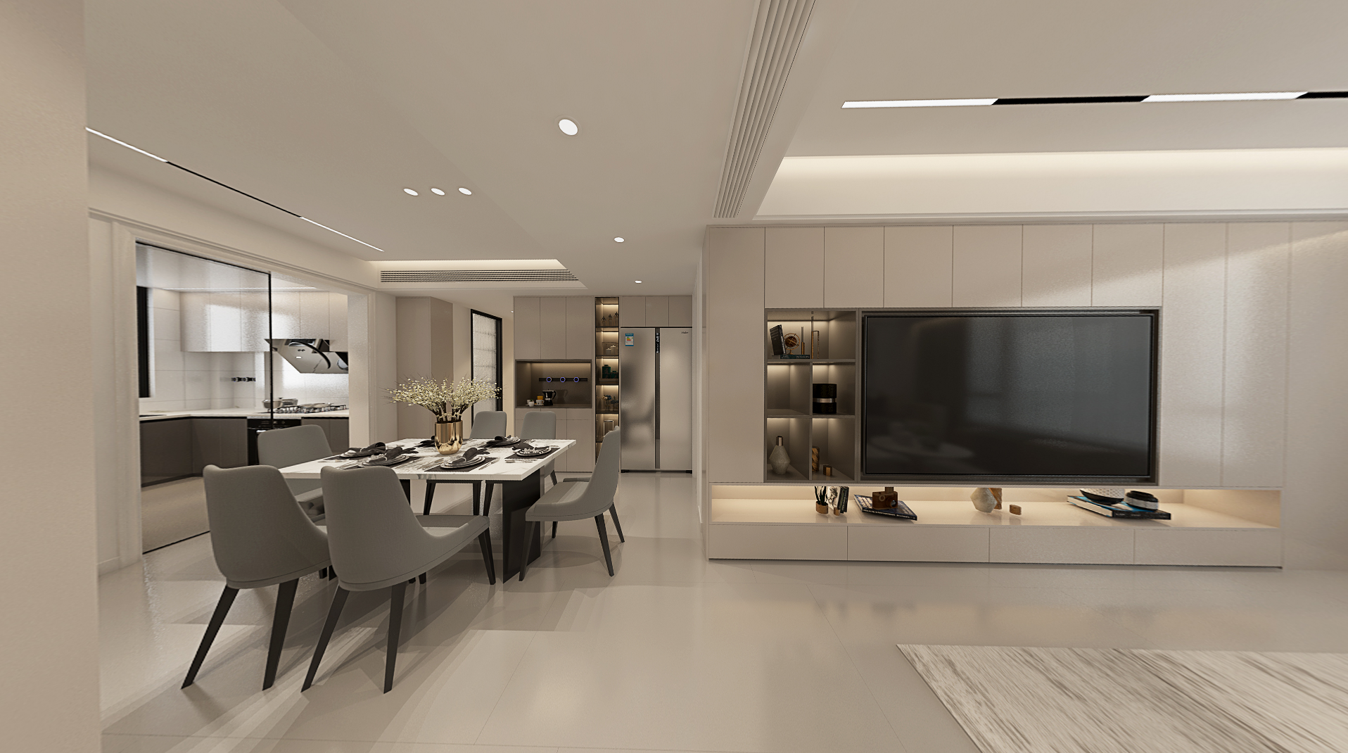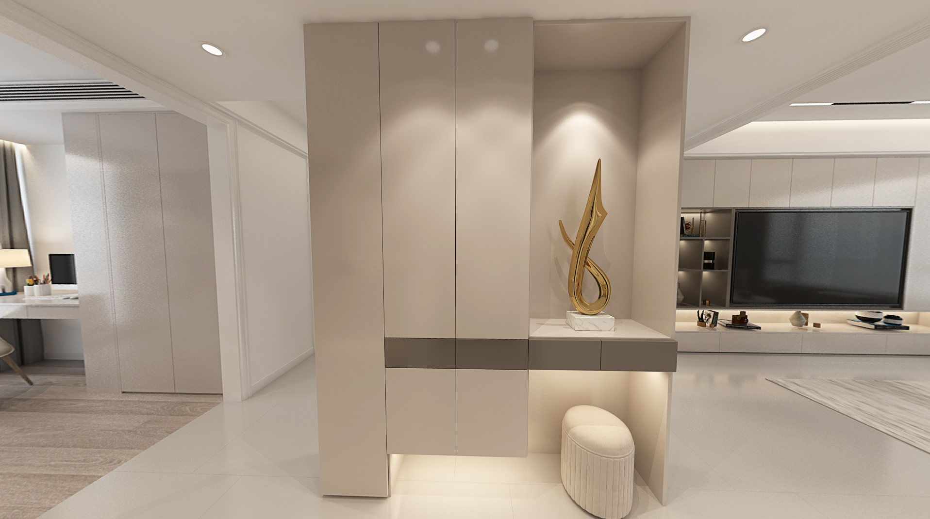 本案业主由于工作繁忙,对家里的装修风格希望简约大方,希望家里装修能够营造一个舒适温馨的氛围,储物功能需求量较大。设计师选用现代风格,利用柜体的储物功能分隔区域,起到储物、分区、美观等多重作用。在空间利用上达到美观实用的双重作用,完美解决了业主的储物需求。