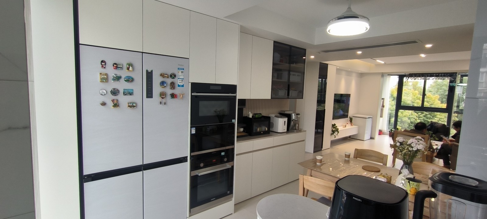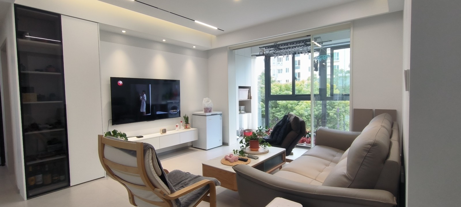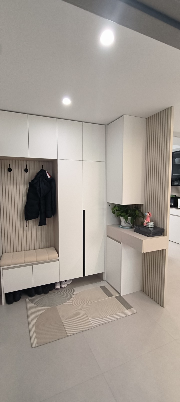本案业主是一对夫妻俩,对生活需求是舒适、便利、温馨、易于打理,因为先生的生活乐趣广泛,需要家具储物与展示功能性的考虑。设计师采用混搭风格,入口处采用半封闭式,提升隐私性,用玻璃门板柜体作为展示功能,便于展示与打理,原木色风格让整个家庭更加自然与惬意。