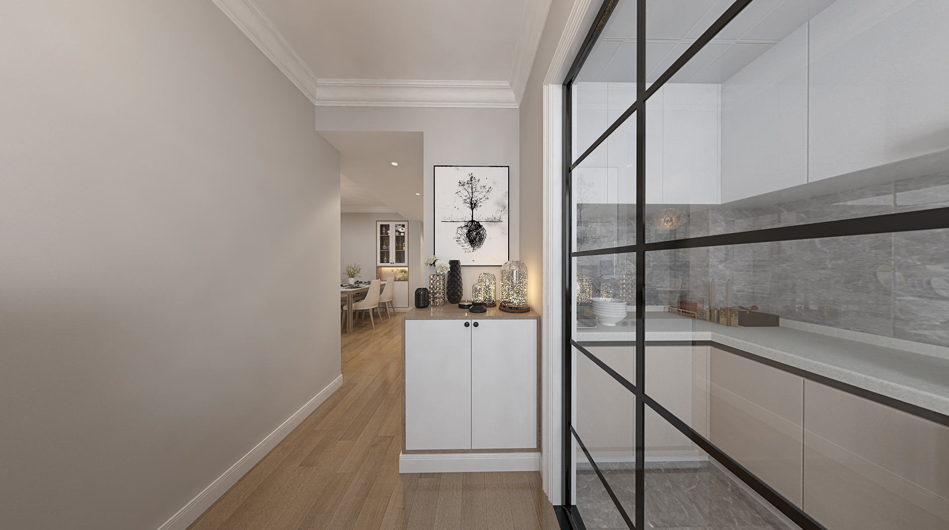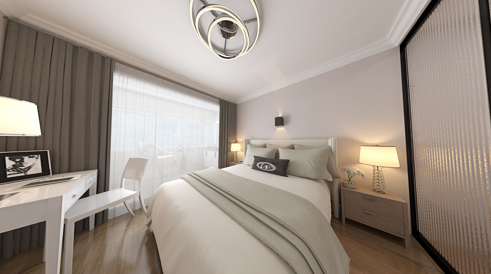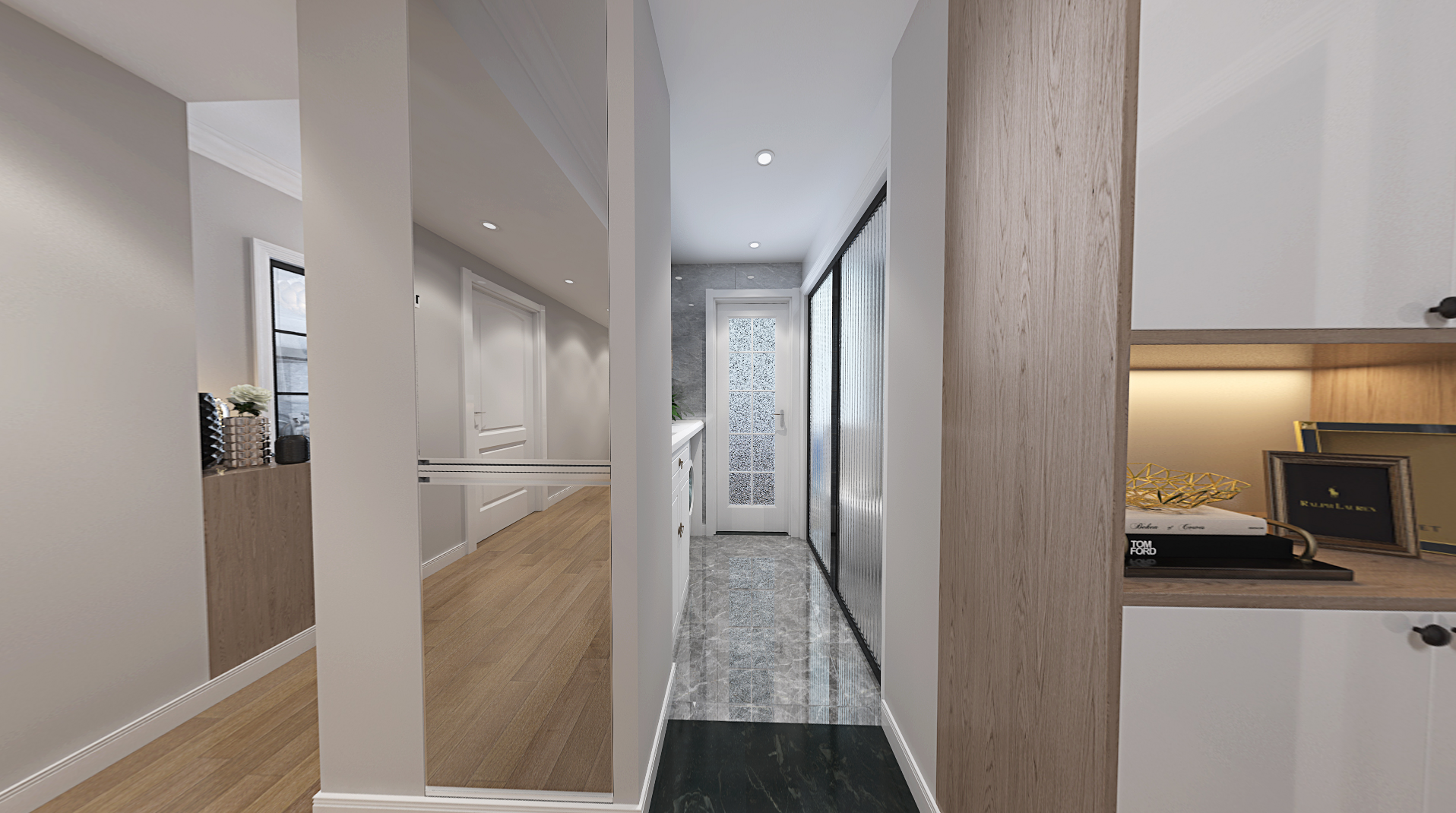 本案户型为二房一厅一厨一卫,需求两卫,储物功能多,卫生间干湿风离。根据业主需求,设计师选用现代简约风格,选用灰色木纹增加空间的服适性,在使用上更加考虑便捷性,尽量保持柜体的平整度,隐蔽式的拉手兼具实用与美观的作用,同时以将空间压缩极致,追求空间的利用最大化,让业主住的放心、开心。