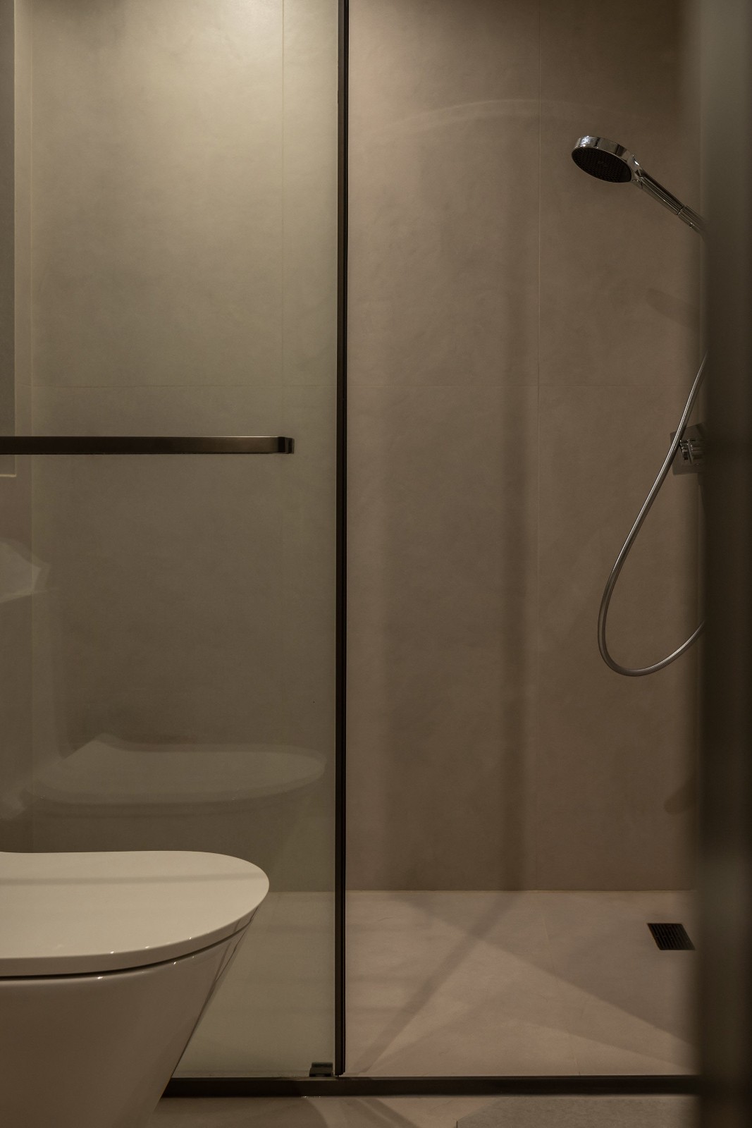 卫生间的设计,讲究简洁松弛的氛围,功能与美感并存。玻璃,既有剔透敞亮的观感,又兼具分隔功能,释放了空间。