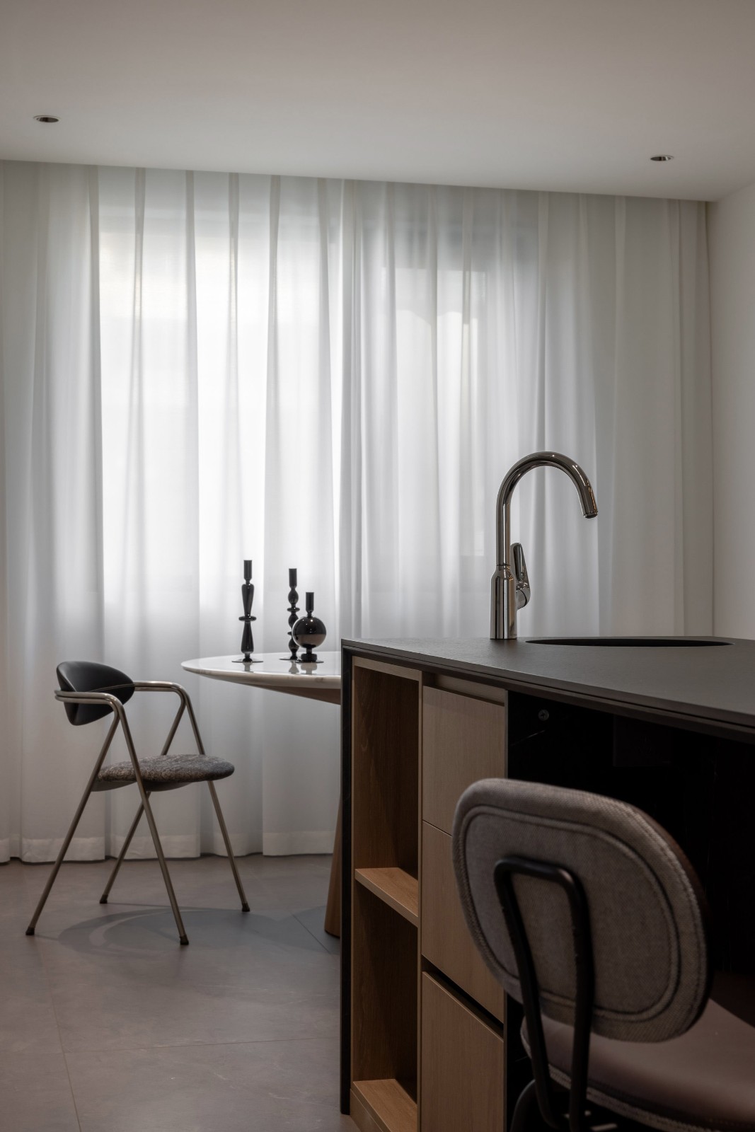 木色、白色、黑色,形成流动的视觉节奏,在空间中交织出一种简约而不简单的美