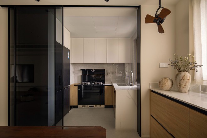 中西厨的结合,餐厅不再只局限与同家人共食的层面,更多的是相聚与陪伴,删去一些不必要的细节,为居者打造一个实用性极强的温馨之地。
