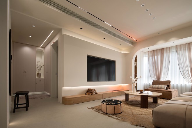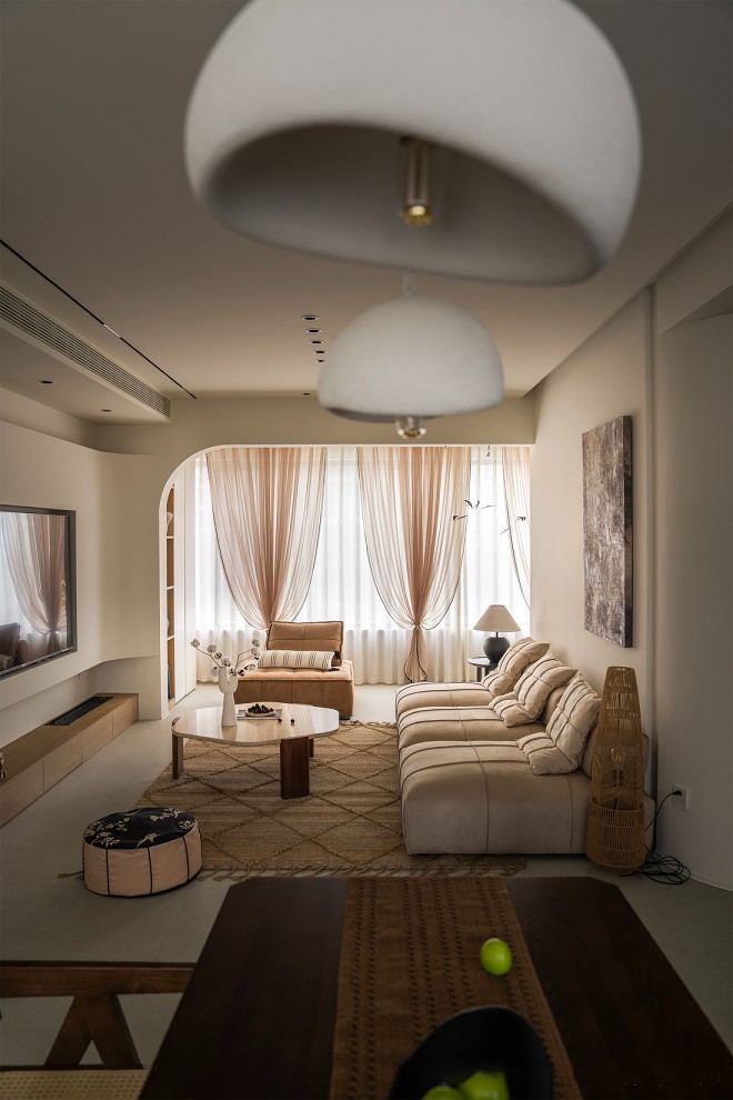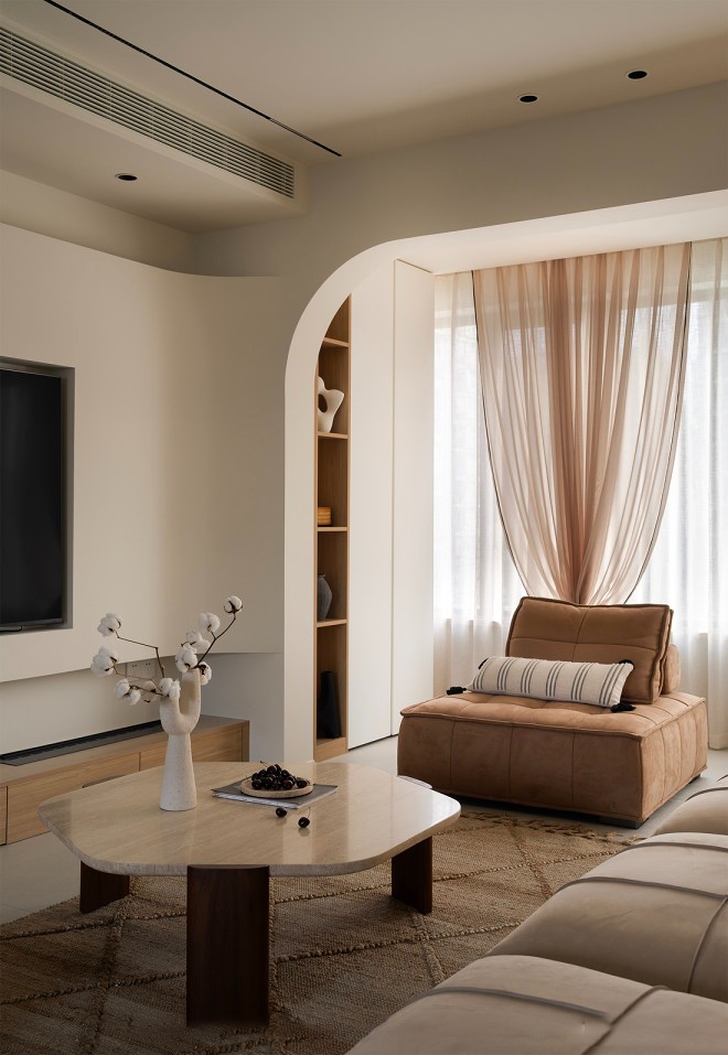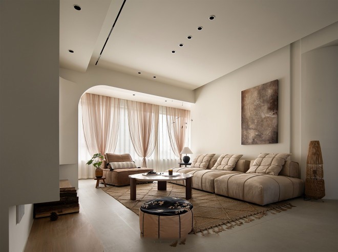 自然光与简单的线条相辉映,铺陈客厅独具氛围的起笔,捋清功能分区、比例有度阳台纳入客厅舒展公共空间。