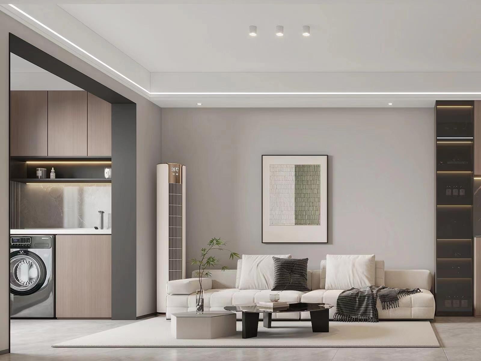 🌥客厅整体背景用灰色调搭配木纹的定制柜做搭配,空间整体色彩度丰富,软装搭配上奶白色的布艺沙发装饰再结合上小茶几的点缀,整体的仪式感和氛围满满。