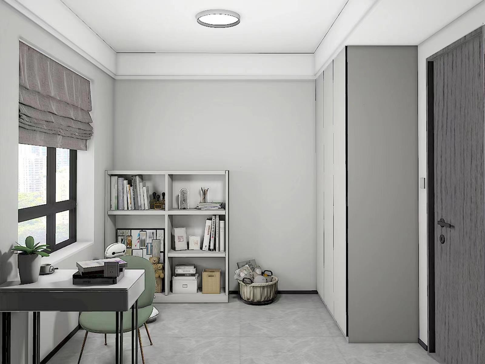 🌥书房作为一个较为灵活的空间,既满足平时的学习阅读,休闲功能,其衣柜和储物柜的设计也满足了其他空间储物的功能。