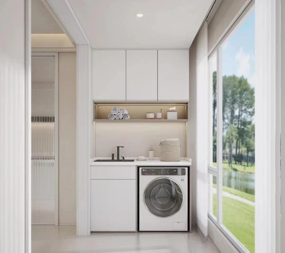 强烈安利生活阳台柜,洗衣机内嵌视觉轻简,再安装一个洗手台,日常洗衣晾衣真的不要太方便 主卧