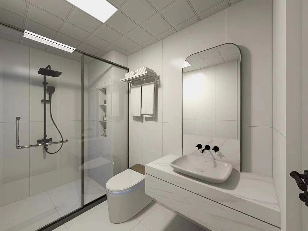 主卫做了干湿分离,纯白色地砖与墙砖展示出卫生间特别干净,湿区做了壁龛设计,储放一些东西,也比较好打扫卫生