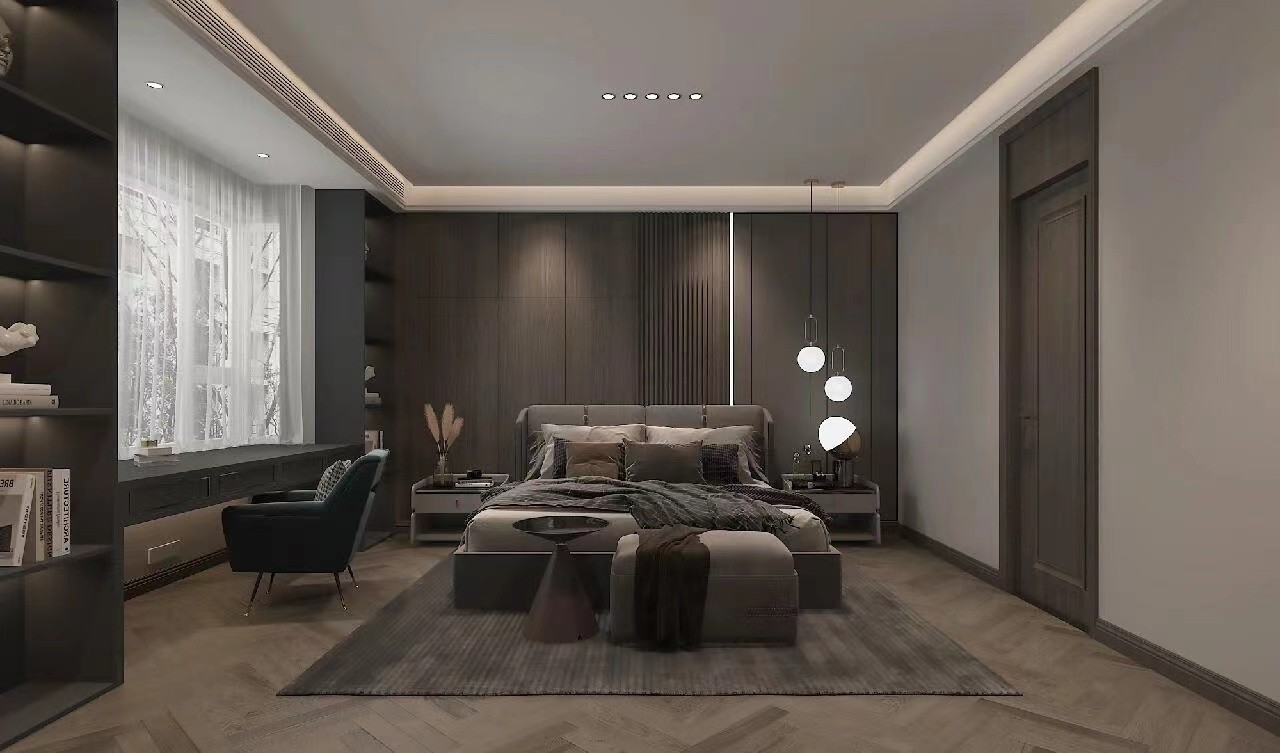 本案是为业主设计的婚房,通过沟通了解到业主对现代轻奢风格,美式轻奢都比较喜欢,两种风格融合一下。变成最终作品