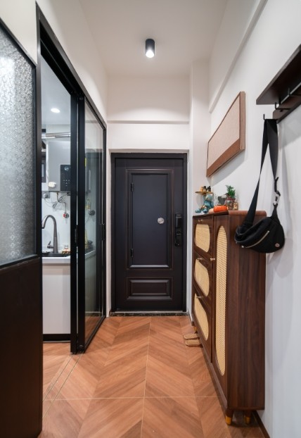 本案是53㎡老房改造,户主是位90后小姐姐,为上下班方便在公司附近买下了这套房子,原本布局设计还算合理所以整体布局没有做大的调整,而是尽量在整体不会显得狭小的前提下,多增加储物空间。 经过改造,重新规划布局让动线合理, 夹缝处也增加空间储物能力;再搭配清新的软装让业主拥有一个温馨、放松、舒适的家。下班回到家就可以消散一天工作的疲惫感。
