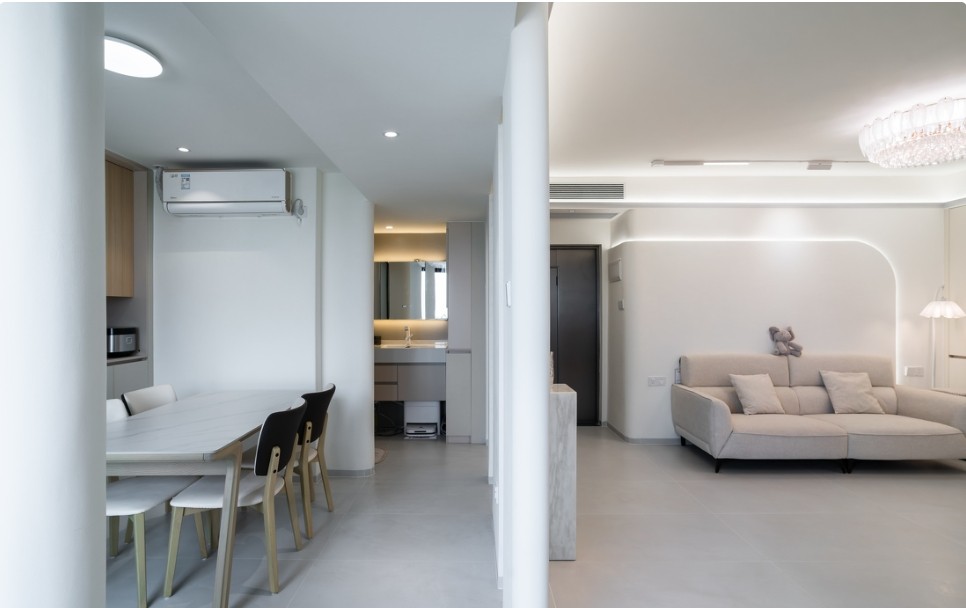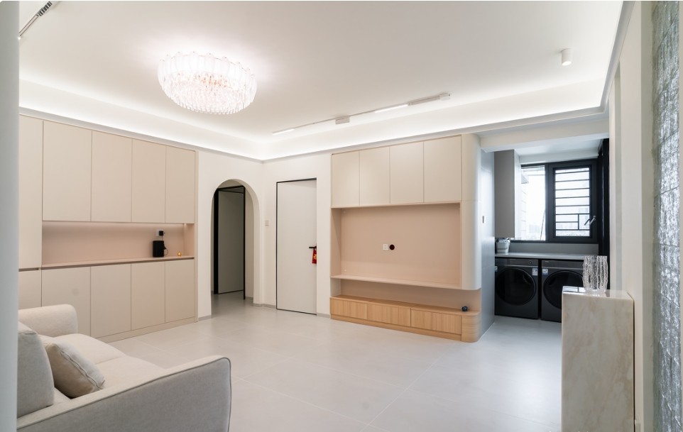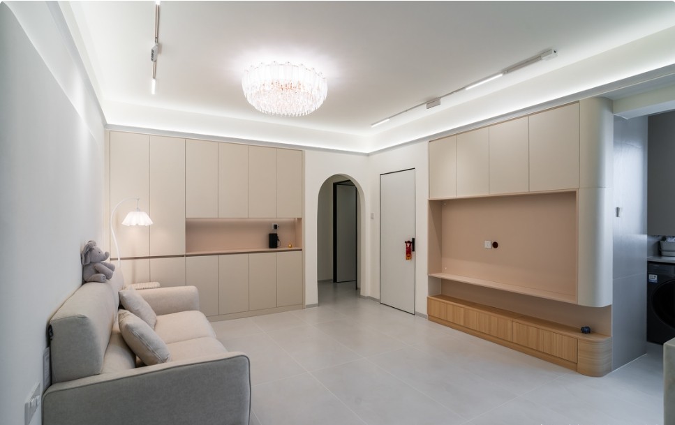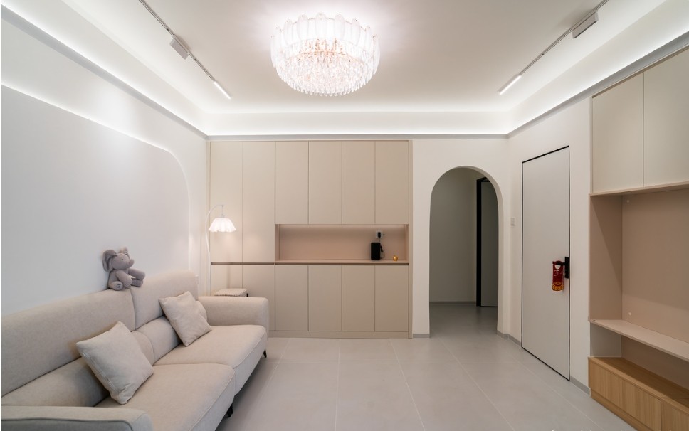 走进客厅,你就能感受到柔和与舒适的双重体验,奶白色墙漆配上哑光地砖,淡雅的色系如同梦幻般的氛围,让每一个瞬间都变得如此美