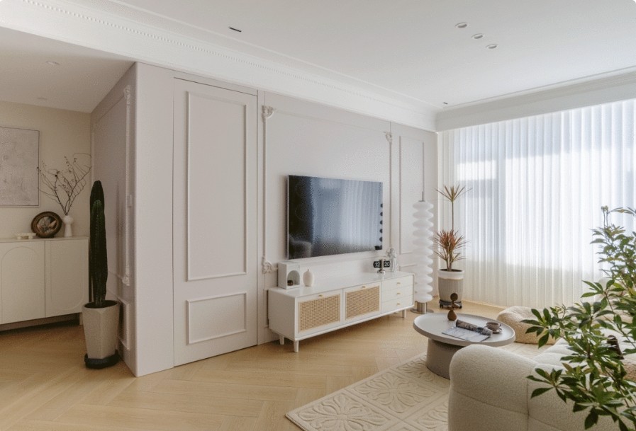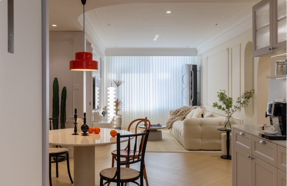 这套案例里充斥着奶油质地的温柔气息 不同于传统法式繁冗的设计 结合女主人的喜好,构建浪漫法式和简约现代相融共生的生活场景 展现独属于屋主的家的气质 整个家即是屋主的情感载体和个性表达。