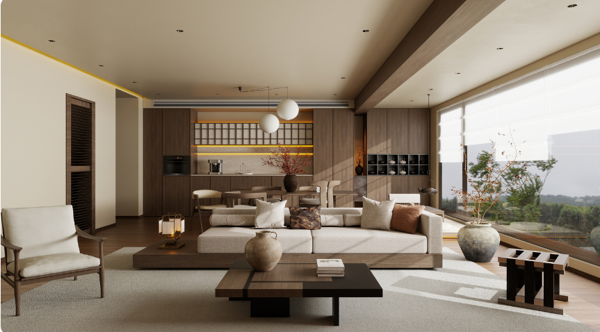 设计运用原木的质感,质朴的色系来打造整体空间感受,让空间不再是冷冰