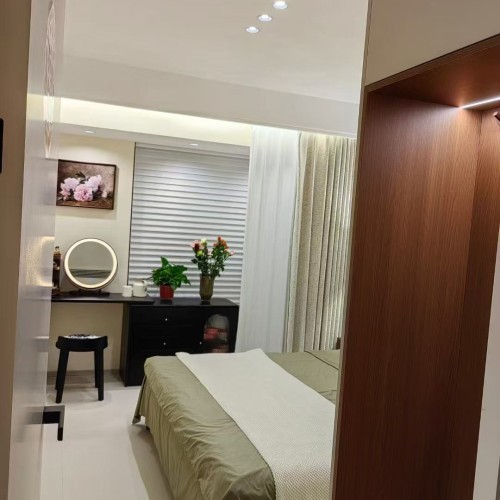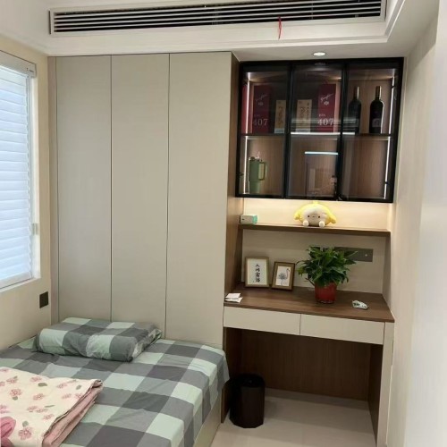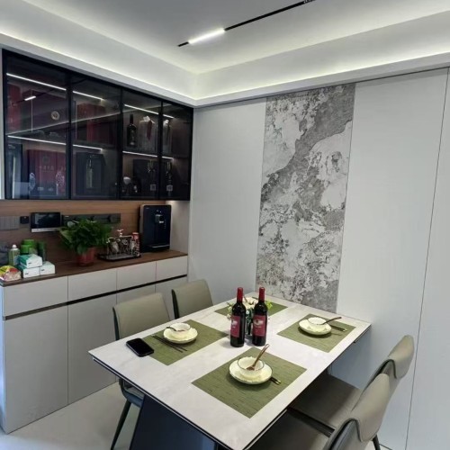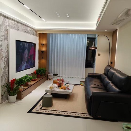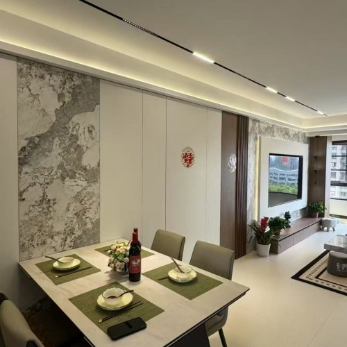 1. 项目概况:本案为一套住宅装修项目,旨在打造一个简洁、舒适且具时尚感的居住空间。设计师围绕现代风格展开设计,注重空间的合理规划与细节处理,通过运用简约的线条、中性的色调和精致的软装搭配,营造出温馨且富有格调的氛围。 2. 空间布局与设计亮点 ? 开放式餐厨区:厨房采用L型设计,浅灰色与白色的橱柜搭配黑色电器,简洁大方。无主灯设计搭配线性灯带,营造出科技感与时尚感。餐厅与厨房相连,白色岩板餐桌搭配浅灰色餐椅,一侧餐边柜兼具收纳与展示功能,玻璃柜门内陈列着酒品等,增添生活品味。 ? 一体化客餐厅:客厅与餐厅一体化设计,增强空间通透感。客厅以白色为主色调,搭配深色木质元素,电视背景墙结合大理石纹理与木质造型,简约大气。黑色皮质沙发搭配浅色茶几,绿植与装饰画点缀其间,落地窗帘让光线柔和进入。天花板线性灯带与筒灯组合,提供充足且有层次的照明。 ? 舒适卧室空间:卧室注重温馨与私密感。主卧以橄榄绿床品搭配白色墙面,木质元素增添自然温暖。床头吊灯提供局部照明,床边梳妆台满足日常梳妆需求。次卧风格简约,浅粉色床品搭配简约装饰画,营造出柔和氛围。儿童房布置简洁实用,书桌与收纳柜一体化设计,满足学习与收纳需求。 ? 简约卫浴间:卫生间采用干湿分离设计,玻璃淋浴房搭配黑色边框,时尚精致。白色台盆与灰色柜体组合,镜柜增加收纳空间,顶部线性灯带提升整体质感。 3. 装修选材与工艺:地面选用浅色系瓷砖,易于清洁且与整体风格协调。墙面多采用乳胶漆,部分区域运用大理石、木质饰面板等提升质感。施工工艺上,注重收口细节,如橱柜与墙面、吊顶与墙面的衔接处,均做到平整、美观。 4. 软装搭配与氛围营造:软装方面,通过绿植、装饰画、摆件等元素增添生活气息与艺术氛围。灯光设计上,不同空间根据功能需求设置不同类型灯具,实现基础照明、重点照明与氛围照明的结合,满足日常生活与情感氛围营造的双重需求。 经过精心设计与施工,本案成功打造出一个功能齐全、风格统一的现代风格住宅,为业主带来舒适、时尚的居住体验。