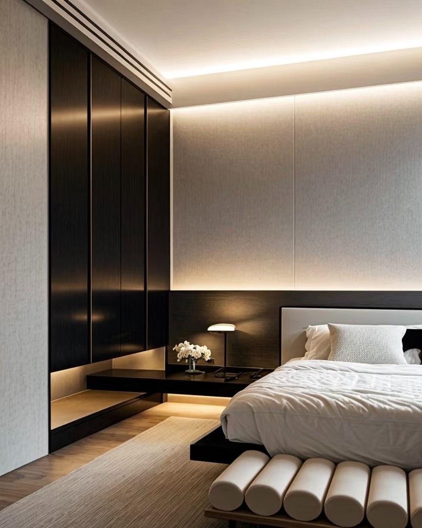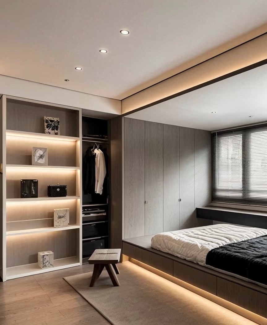 本案例为现代简约风格家装设计,涵盖客厅、餐厨、卧室、卫浴等空间。整体以高级灰为主色调,搭配简洁的线条与柔和的灯光,营造出静谧、雅致氛围。客厅开放式布局,增强空间通透感;卧室注重收纳与休憩功能融合,利用地台、嵌入式柜体优化空间;卫浴通过简洁的台面、独特的灯光设计,呈现简约而不失质感的格调,展现出对现代舒适生活的诠释。