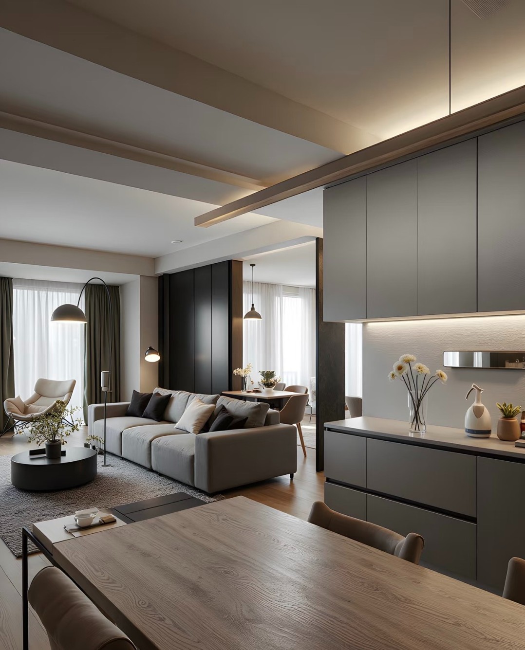 高级灰主导的现代简约宅邸