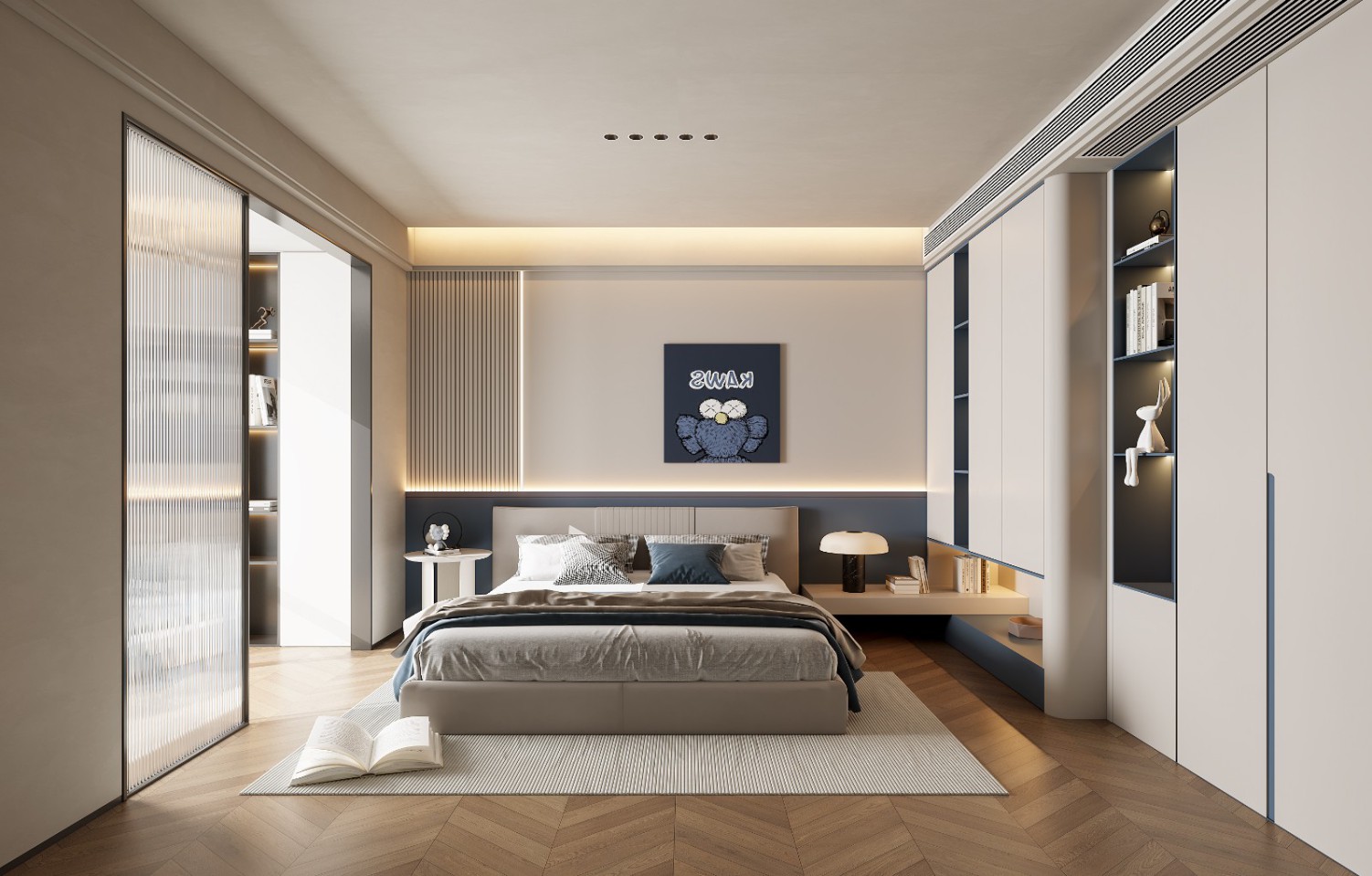 以现代意式风格为主,搭配暖色深色调,全屋无主灯设计