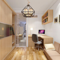 客厅.jpg - 客厅是一个多功能区域,既可以做客厅使用,又可以做儿童房。设计师使用了可折叠的沙发,在客厅转角处设计师还设计了可供小孩读书写字的书桌。