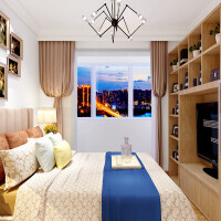 卧室.jpg - 卧室设计师采用了白色乳胶漆材质,使原本就不大的卧室显得宽敞明亮。在色调上采用了浅色调,使空间带有温暖的感觉!