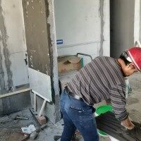 泥工师傅认真工作中