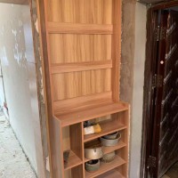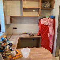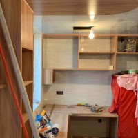 泥木阶段施工中,柜子框架已经全部完成,用E0级环保实木生态板制作,