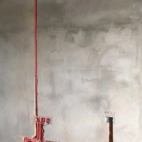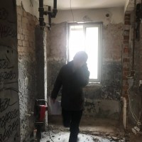 准备开工,设计师与监理以及工地负责人和房东进行现场交接。现场定位,马上就要敲墙了。