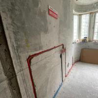 水电阶段已完成,线管排放合格,遵循横平竖直原则,工地现场整洁。预埋底盒洒水湿润,保持水泥砂浆的粘合性。强弱线管间距30cm,交叉处使用锡箔纸保护,杜绝信号干扰。水管与电管交接时,电管在上水管在下。线管与线管之间预留10mm缝隙,工程质量合格,工程将进入下一阶段。