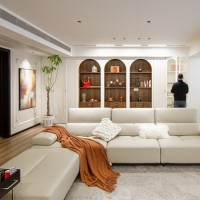 客厅是整屋设计的核心,设计师采用了开放式布局,将客厅与餐厅和厨房相连,形成一个通透的空间。客厅中央摆放了一套简约的象牙白