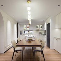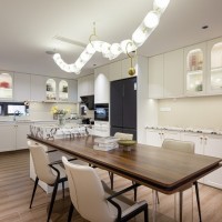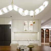 餐厨区域采用了开放式设计,使得空间更加宽敞明亮。餐厅中央摆放了岛台和餐桌一体的设计,搭配四把简约风格的餐椅,营造出优雅的