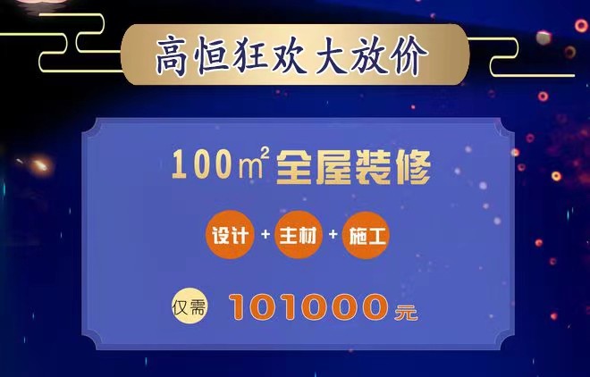 高恒诚意十足的推出100㎡整屋装修一口价101000元活动,让你真正优惠到家!